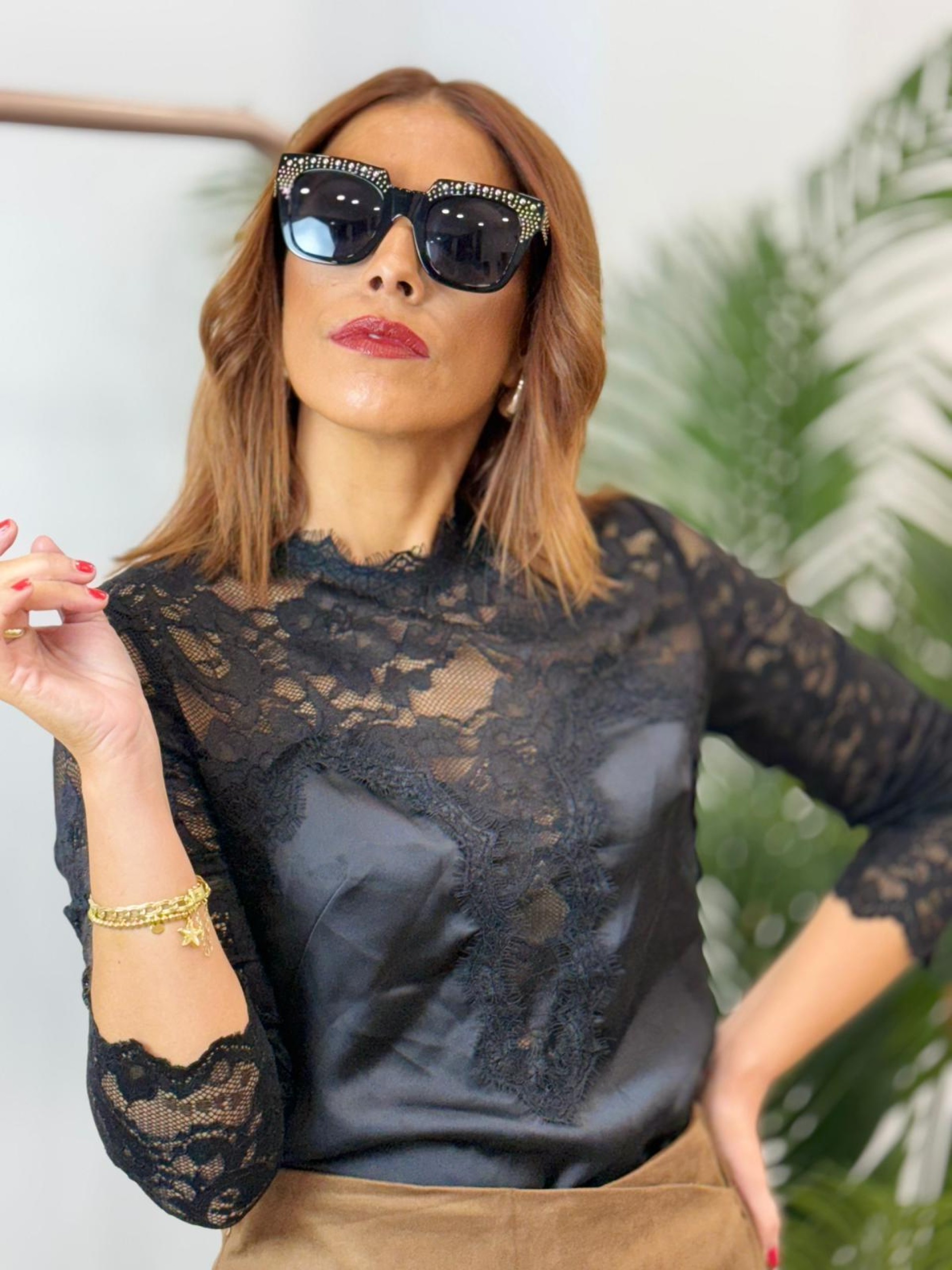 Blusa encaje satén negra