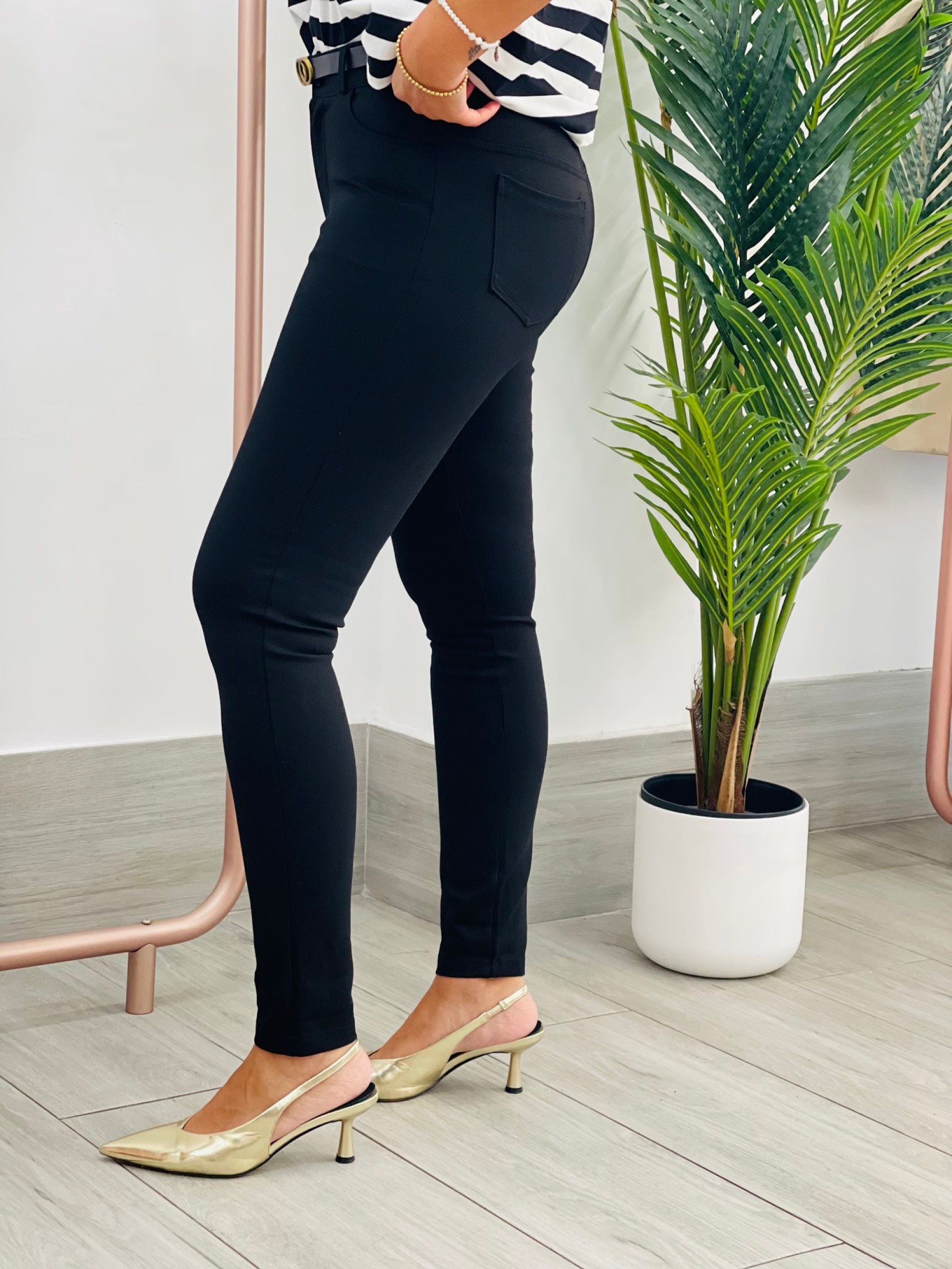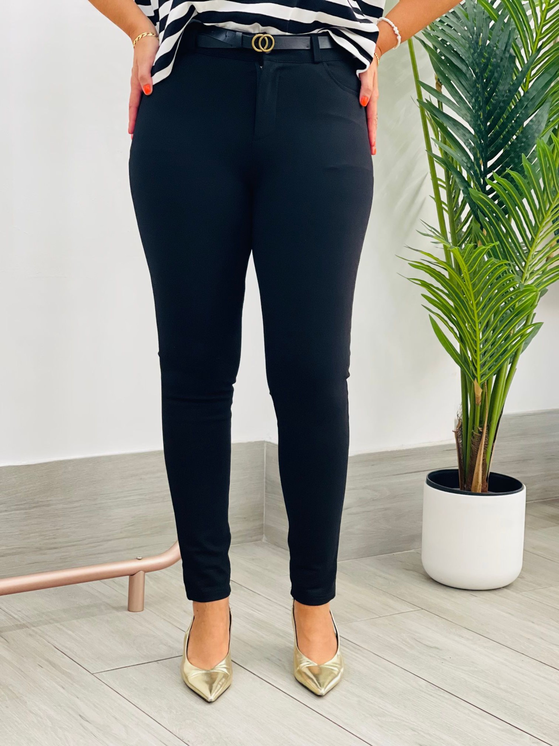 Leggin bolsillos negro cinturón. Pitillo elastico.