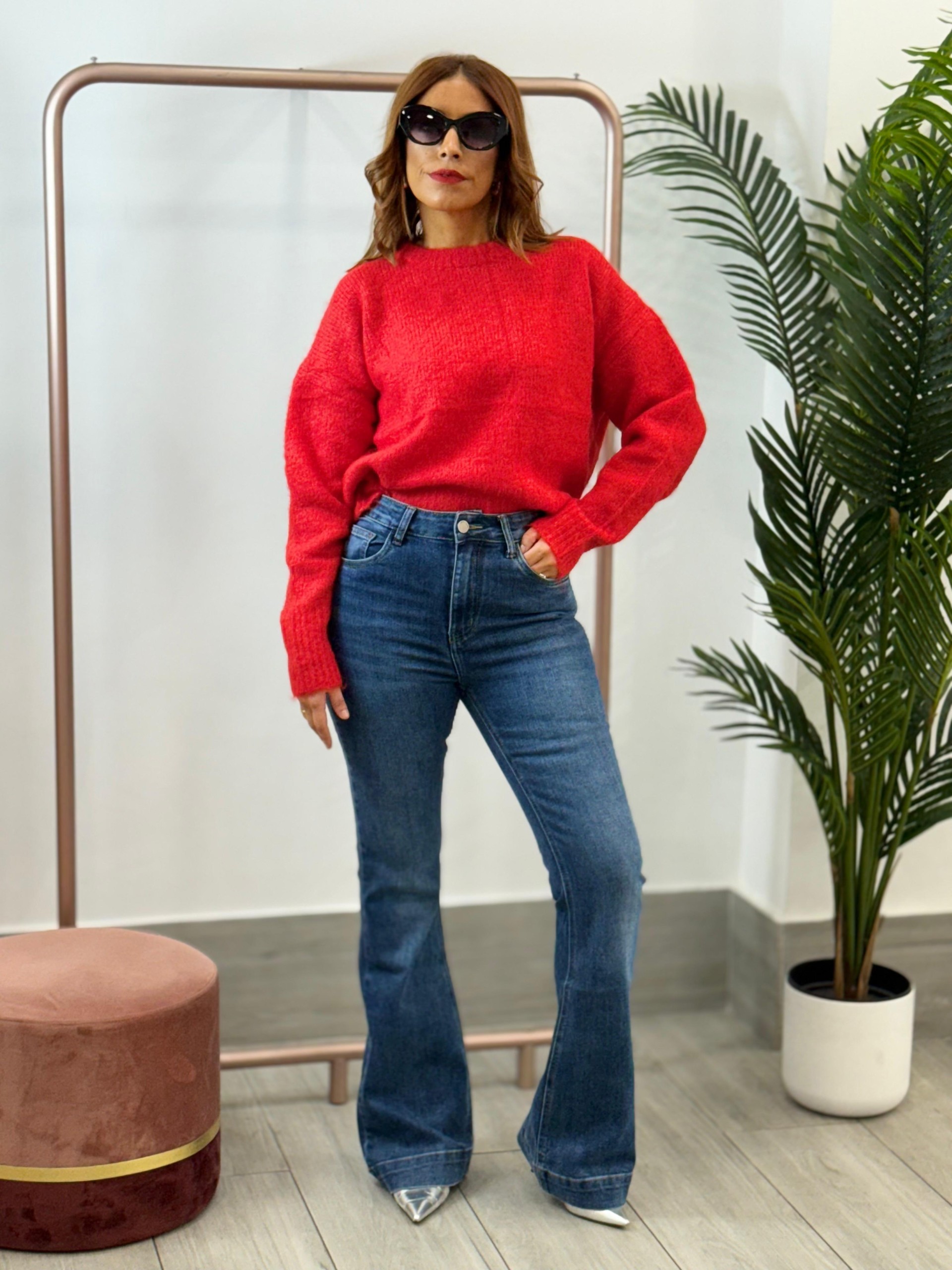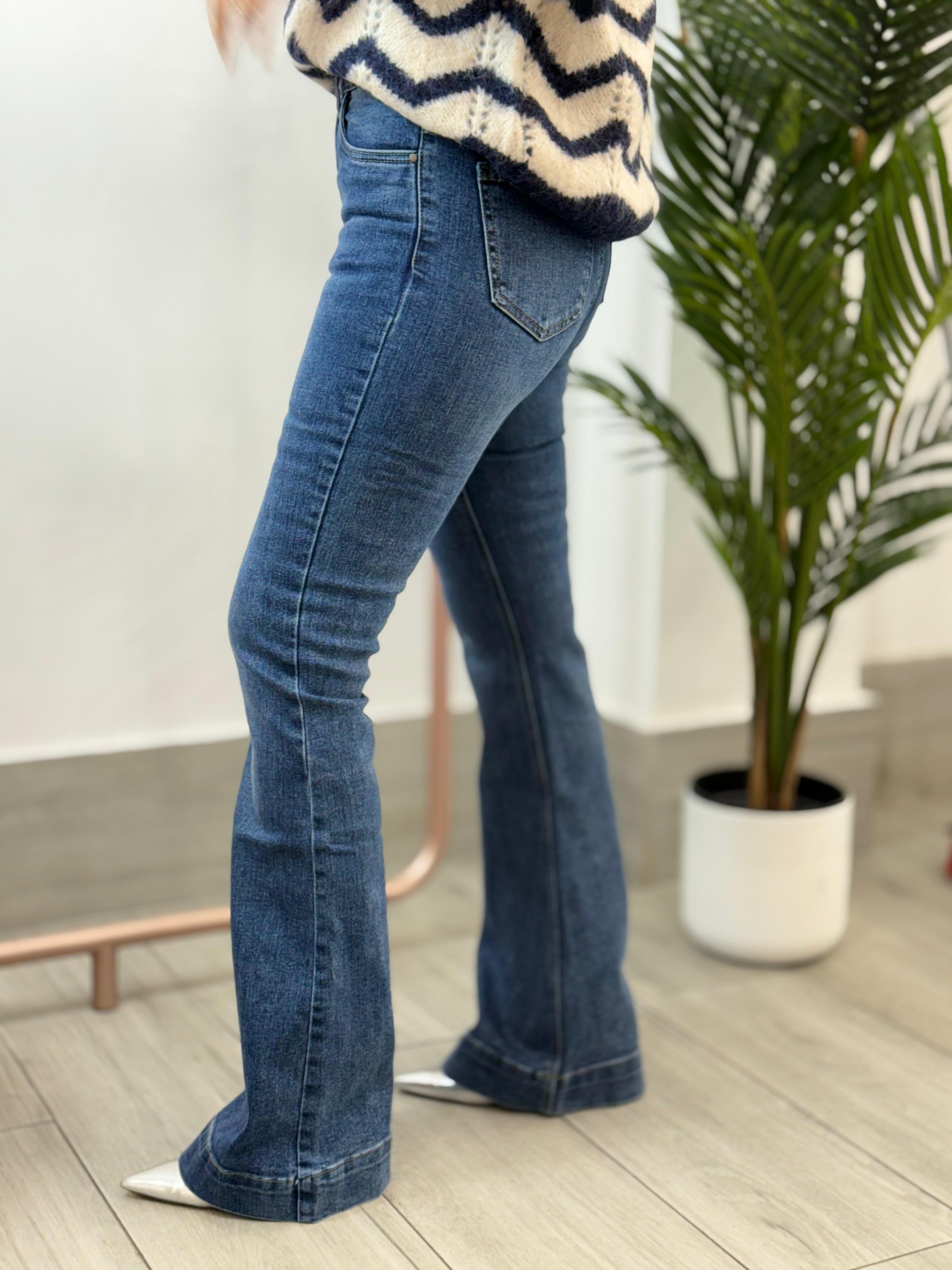 Pantalón flare vaquero largo.