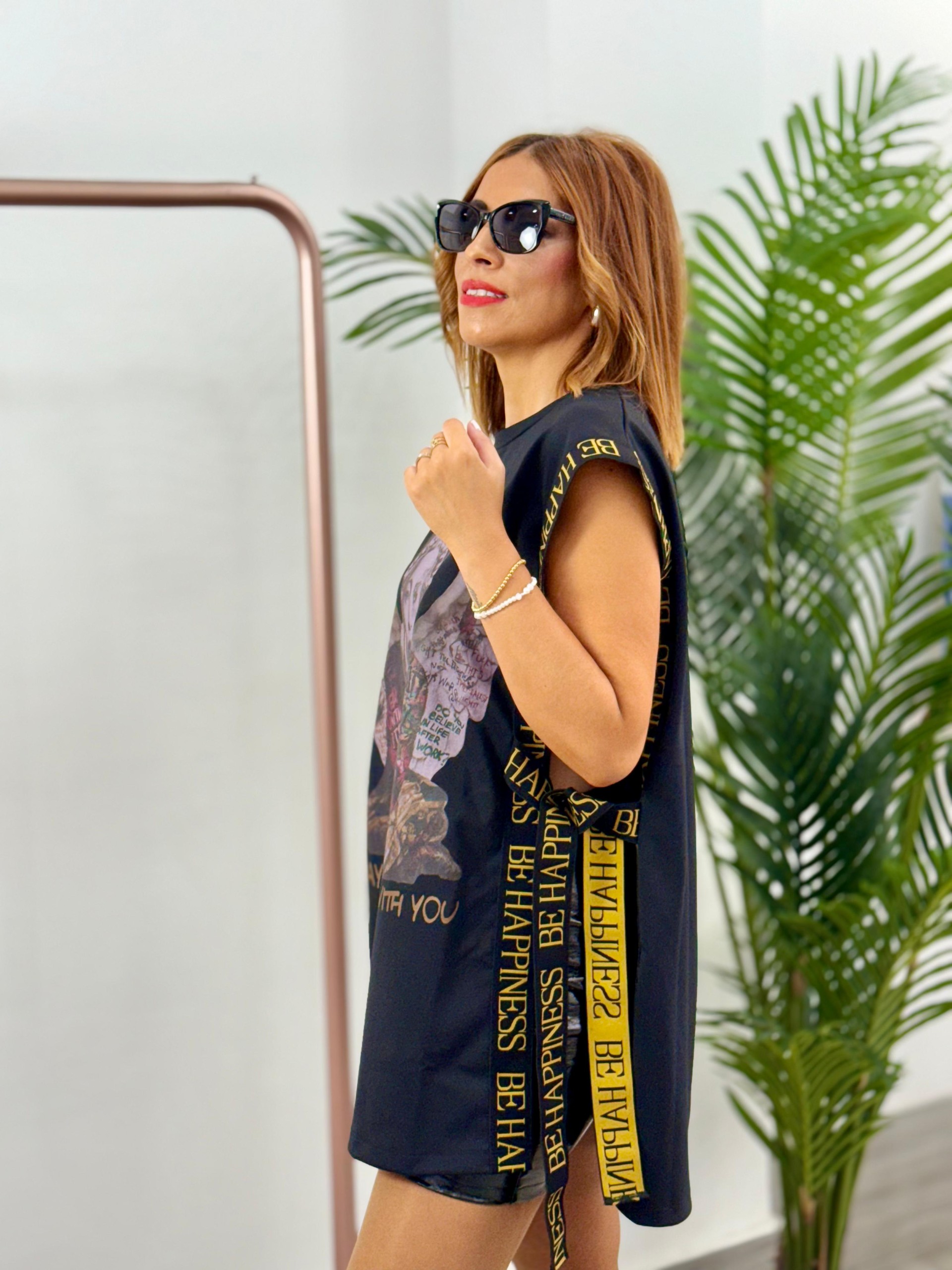 Chaleco Angelo Di late-Special. Negro con detalles amarillos. 95% de algodón de alta calidad. Lleva correa ajustable en los laterales