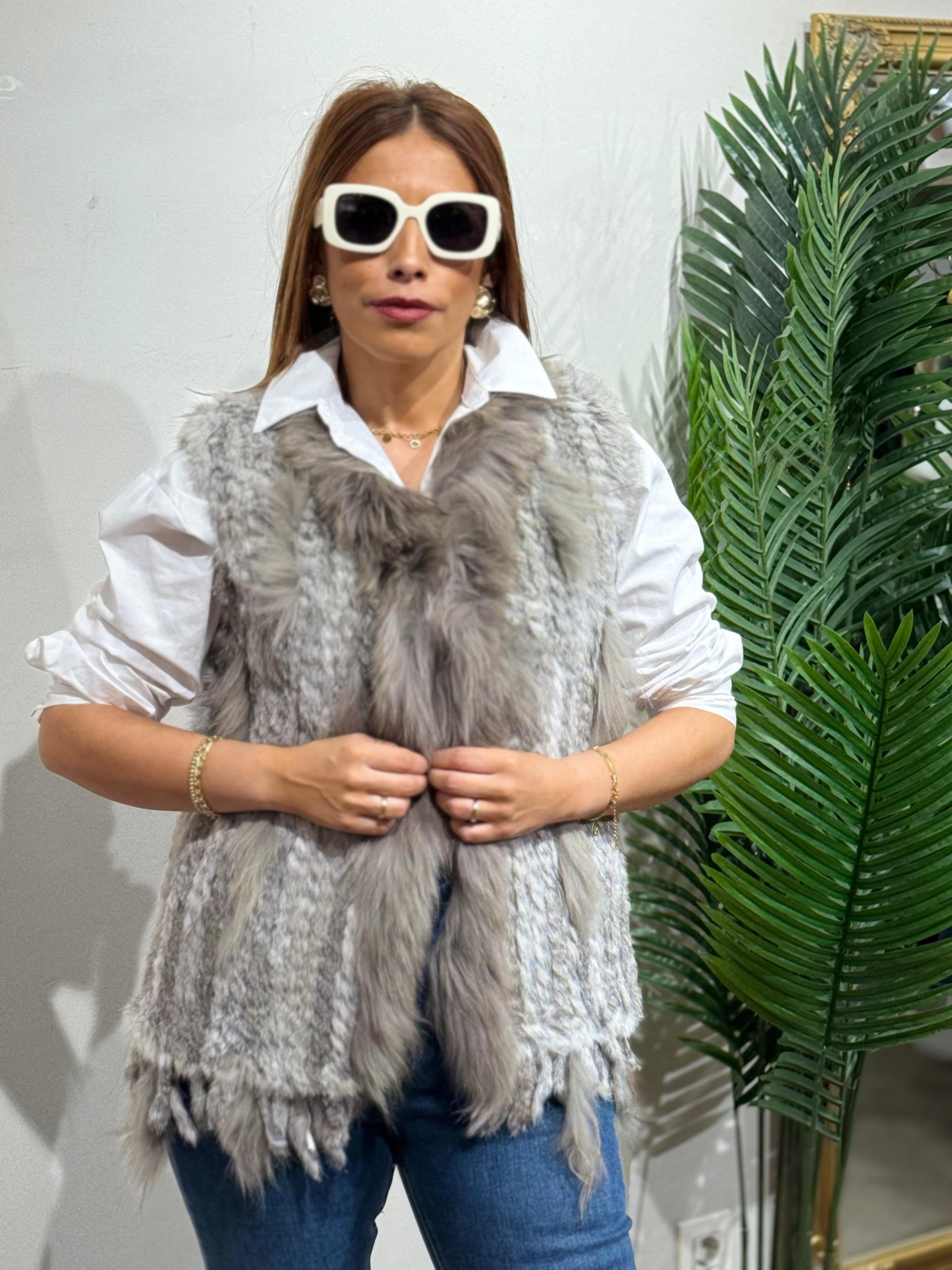 Chaleco piel combinada gris