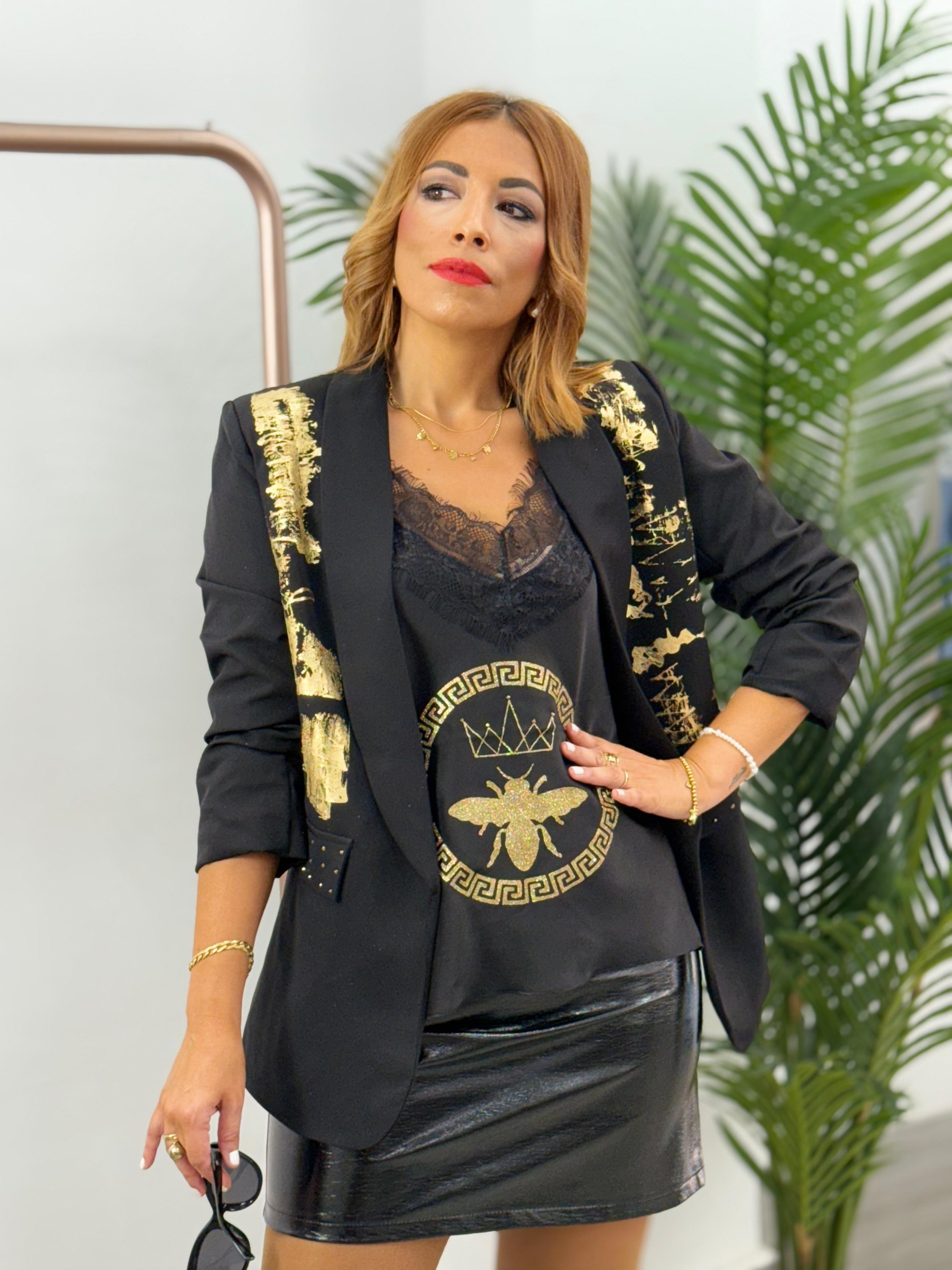 Blazer pan de oro diseño abeja negra.