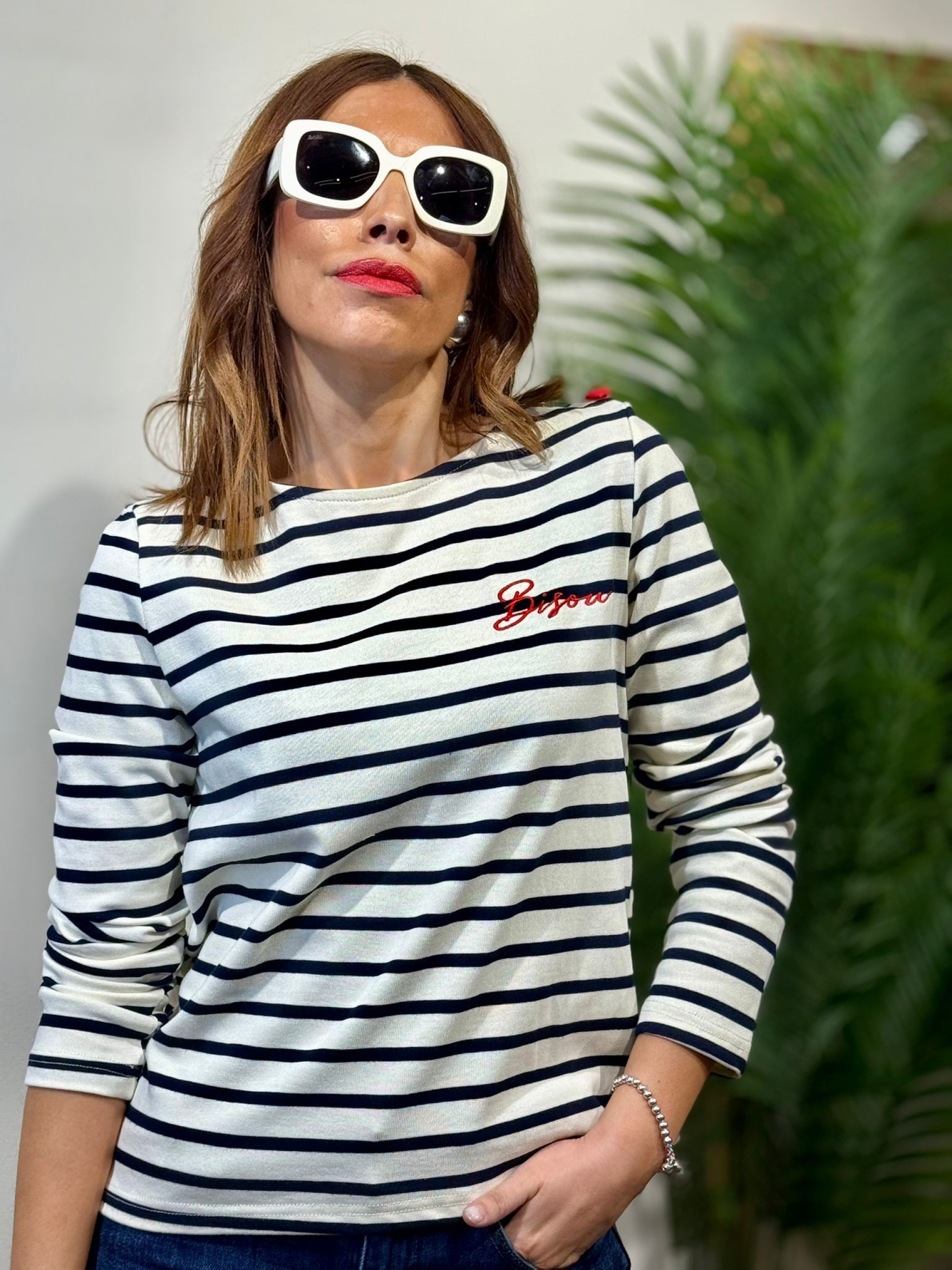 Camiseta Rayas Botón Corazón. Manga larga y tejido de algodón de alta calidad. Botones forrados con forja de corazón.