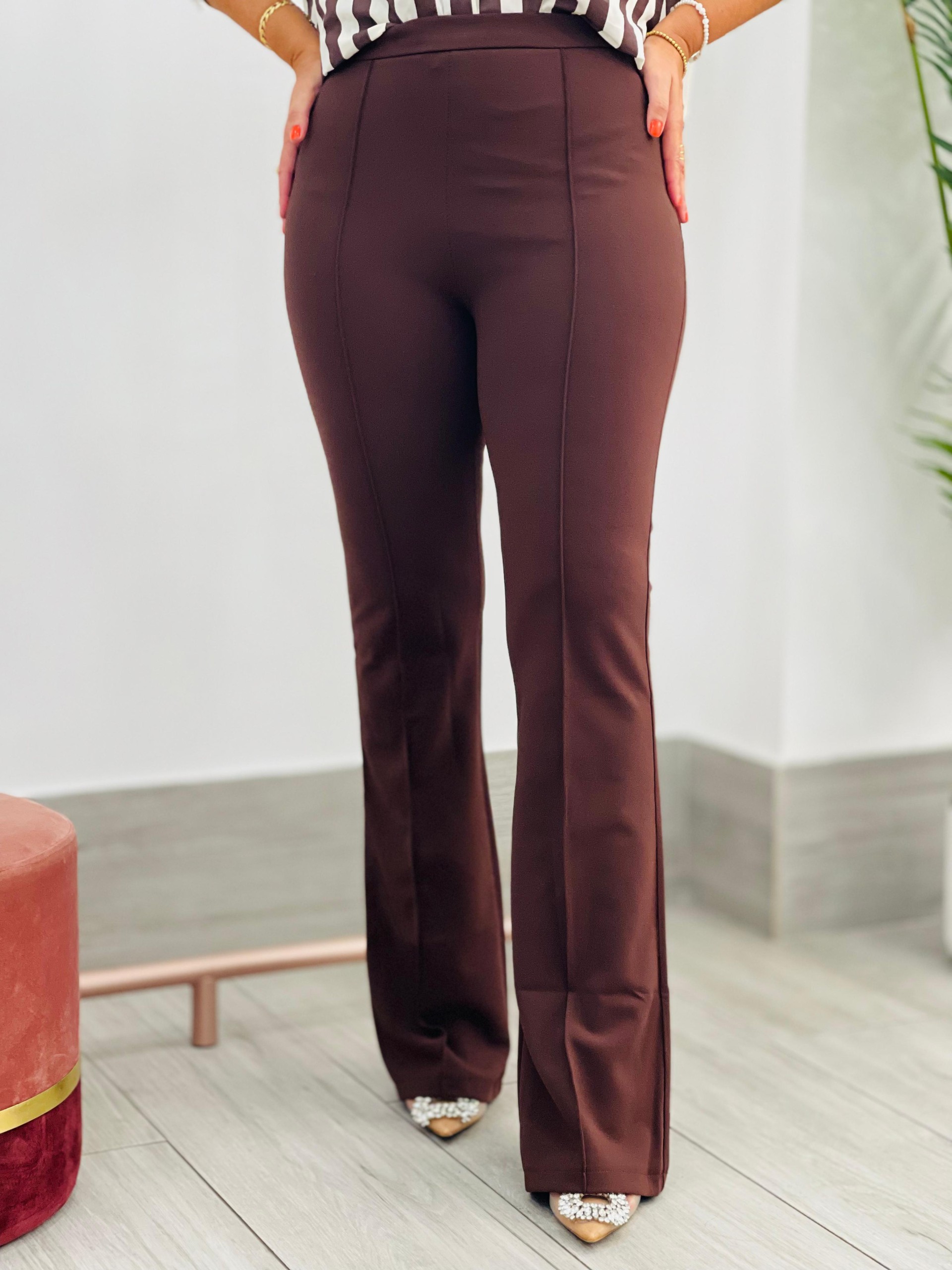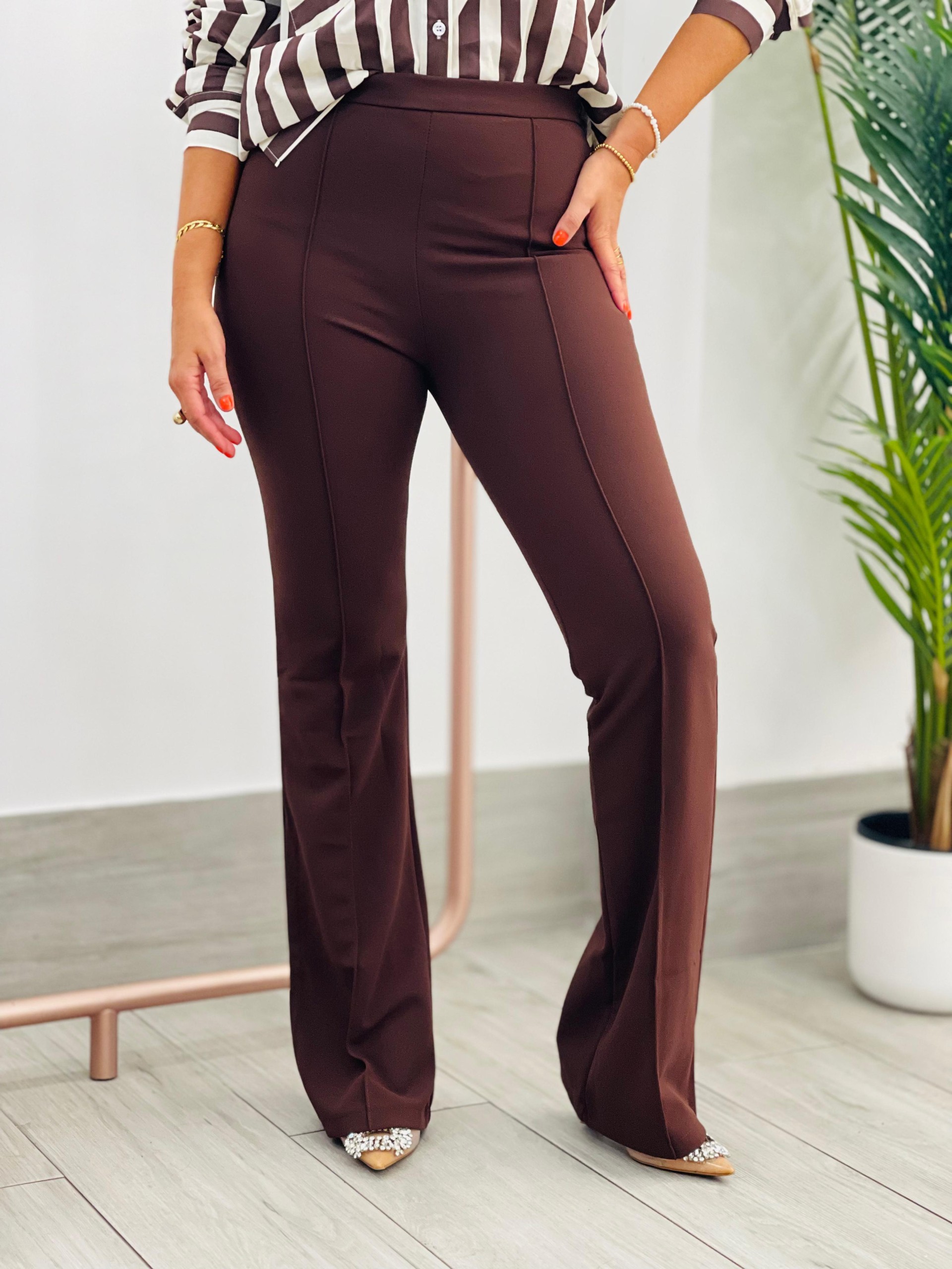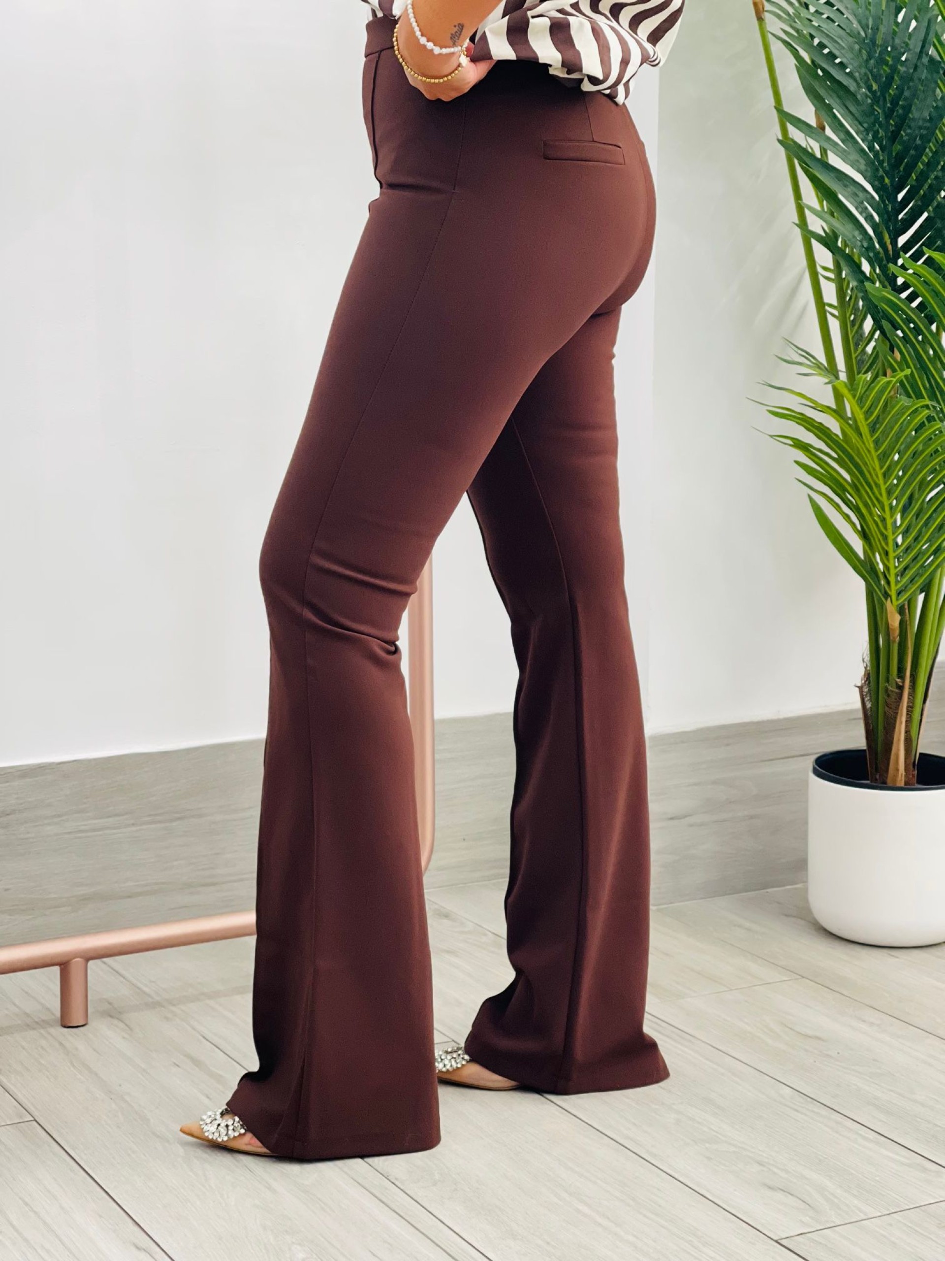 Leggin flare chocolate. Tejido elástico. Lleva cremallera lateral y efecto campana.
