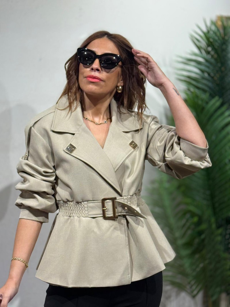 Chaqueta peplum cinturón beige