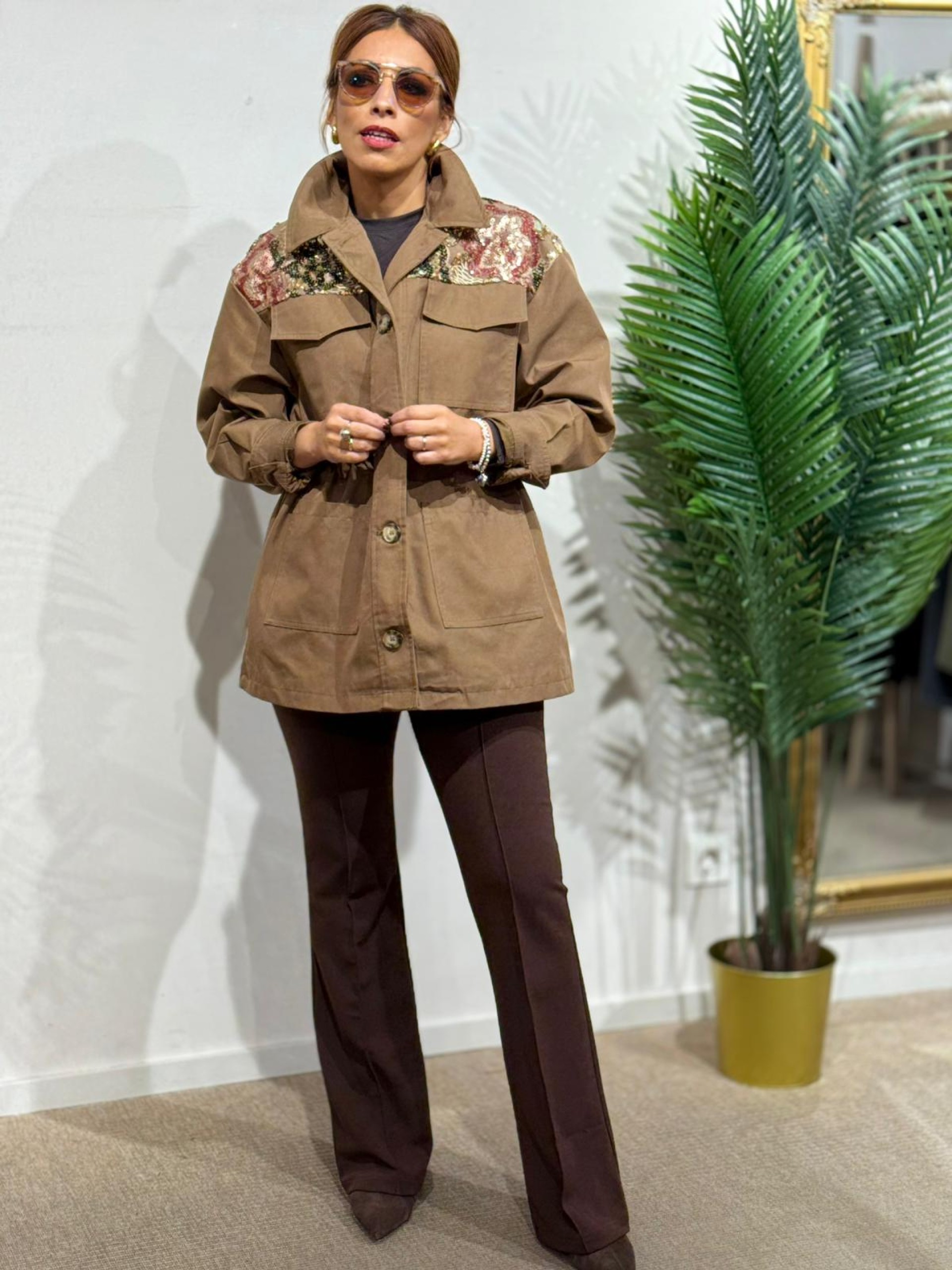 Sahariana oversize lentejuelas Camel.