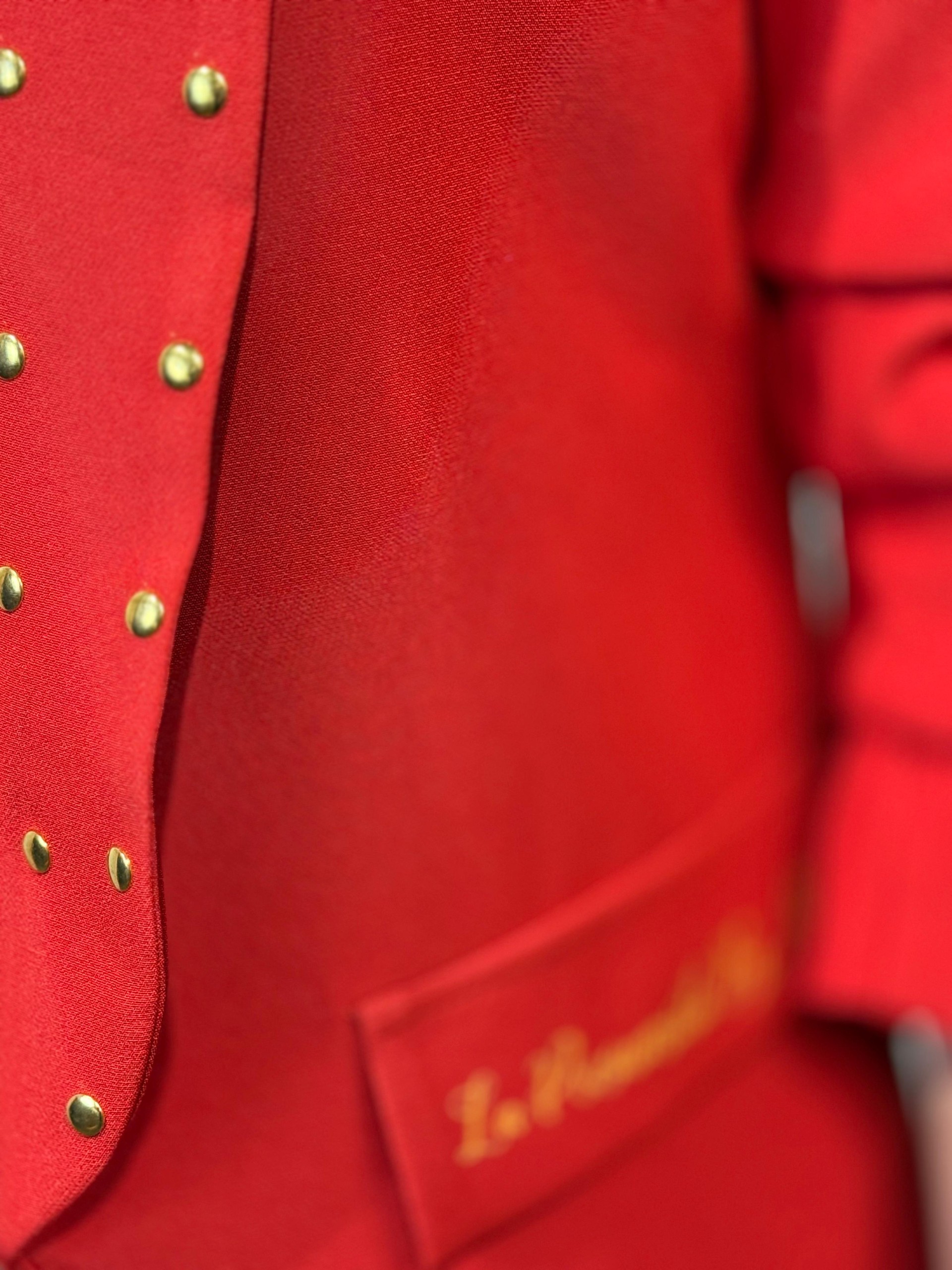 Blazer diseño corazón Roja. Lleva forro interior y tachuelas doradas en solapas. Manga fruncida y corte entallado.