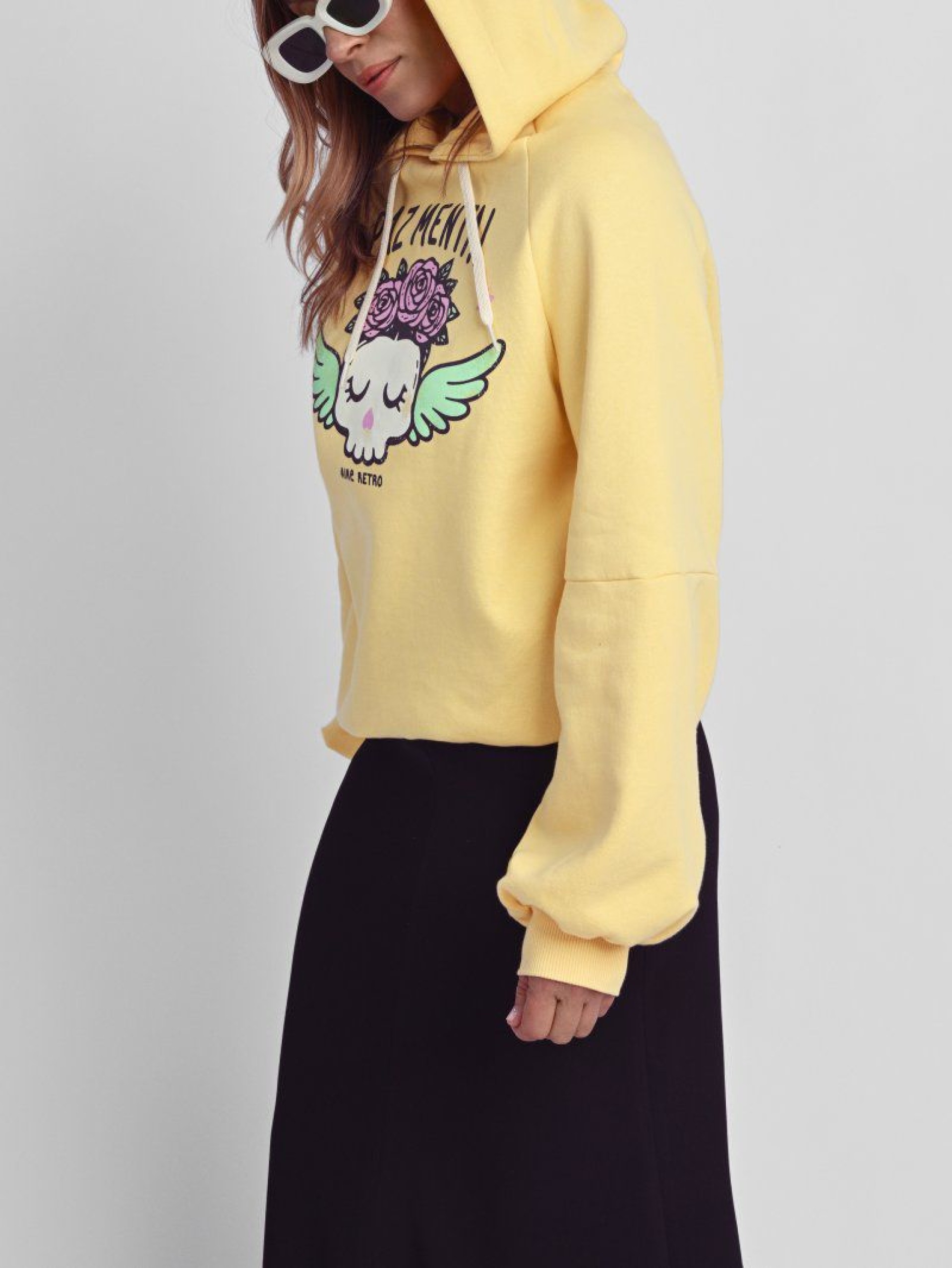 Sudadera “Paz Mental” Amarilla. Lleva la Manga abullonada y capucha.