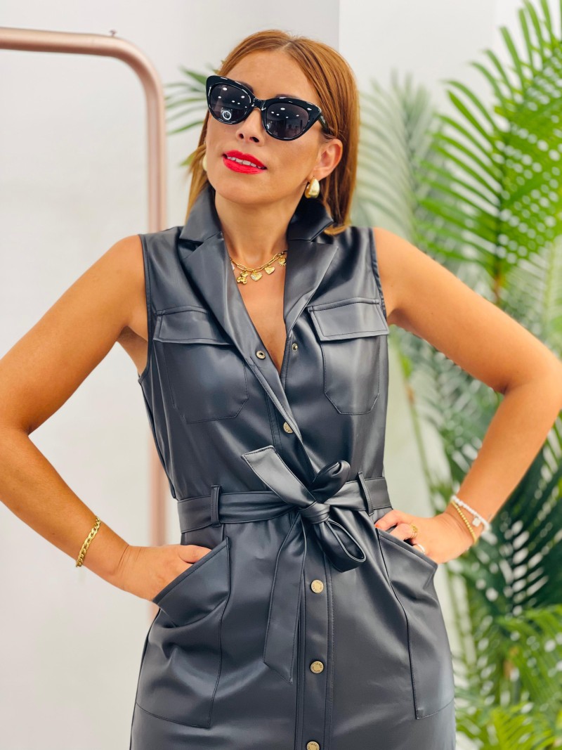 Vestido camisero Polipiel negro