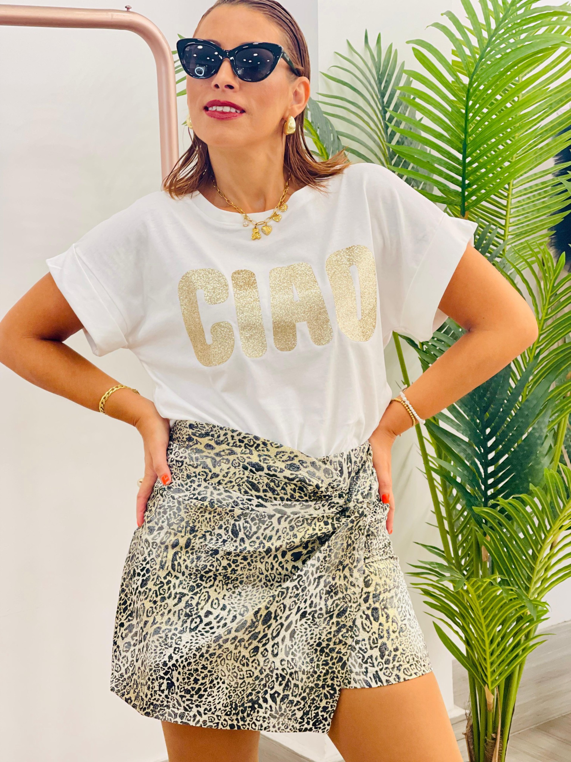 Falda pantalón drapeada print brillo