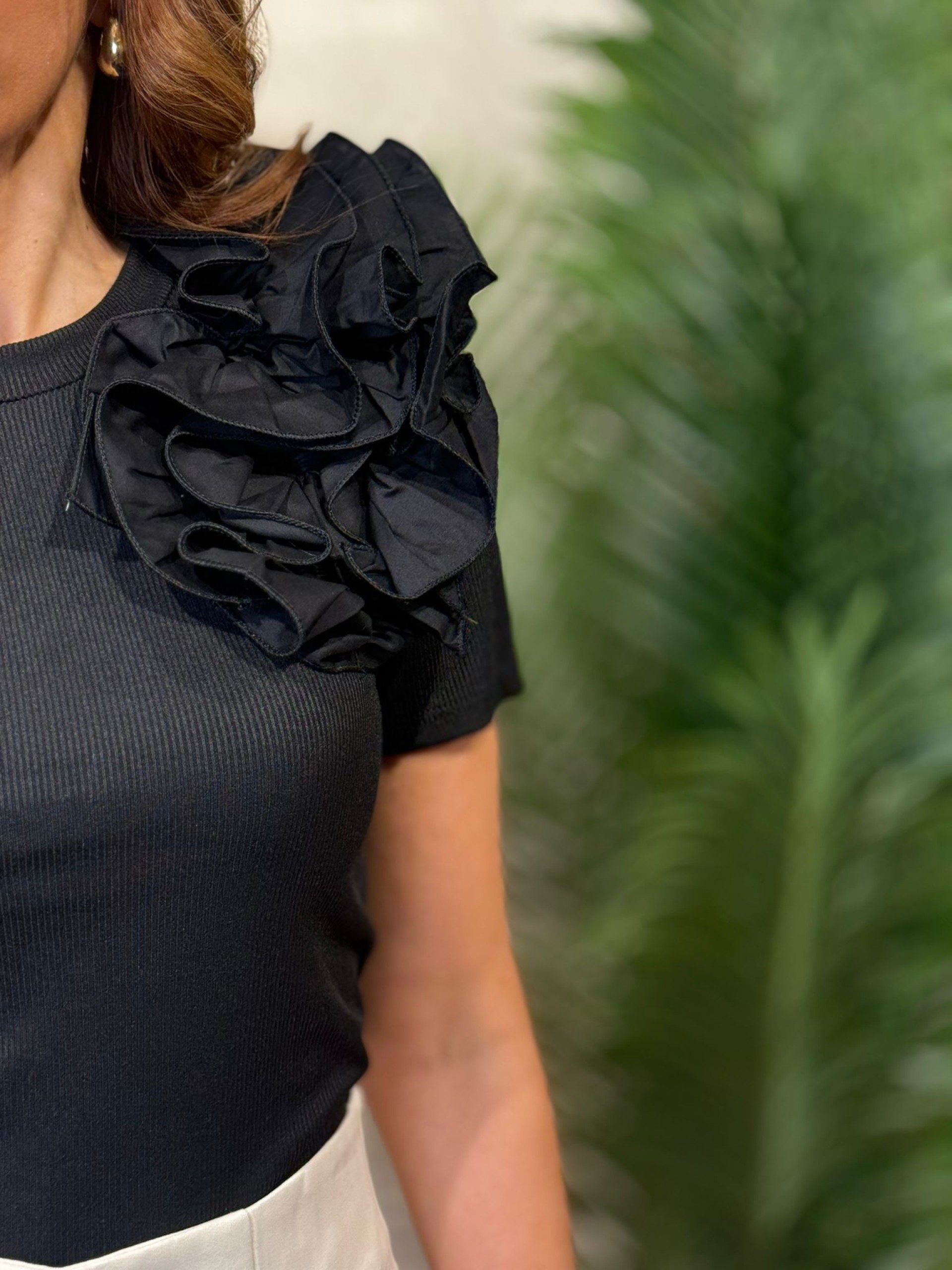 Camiseta canalé volantes negra.