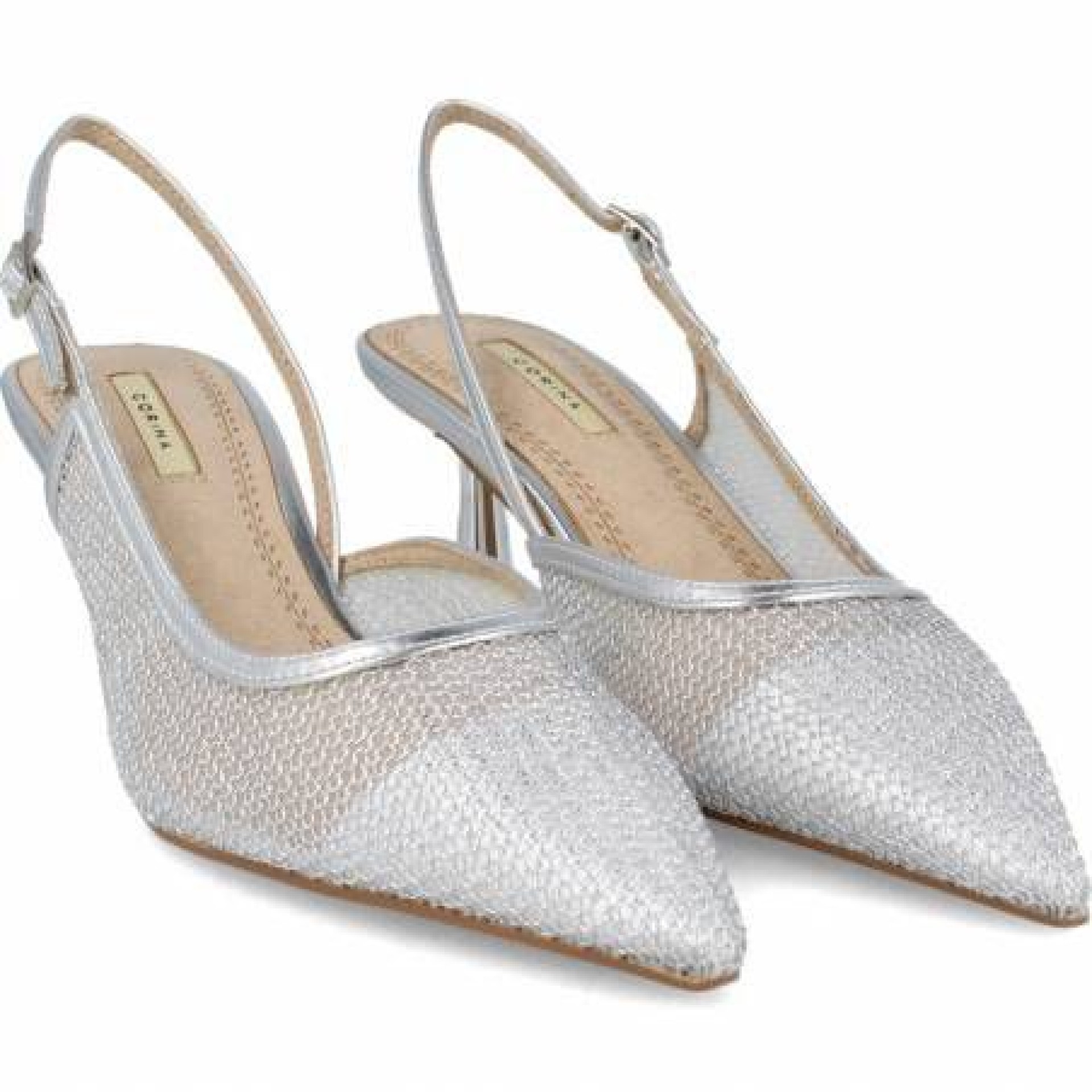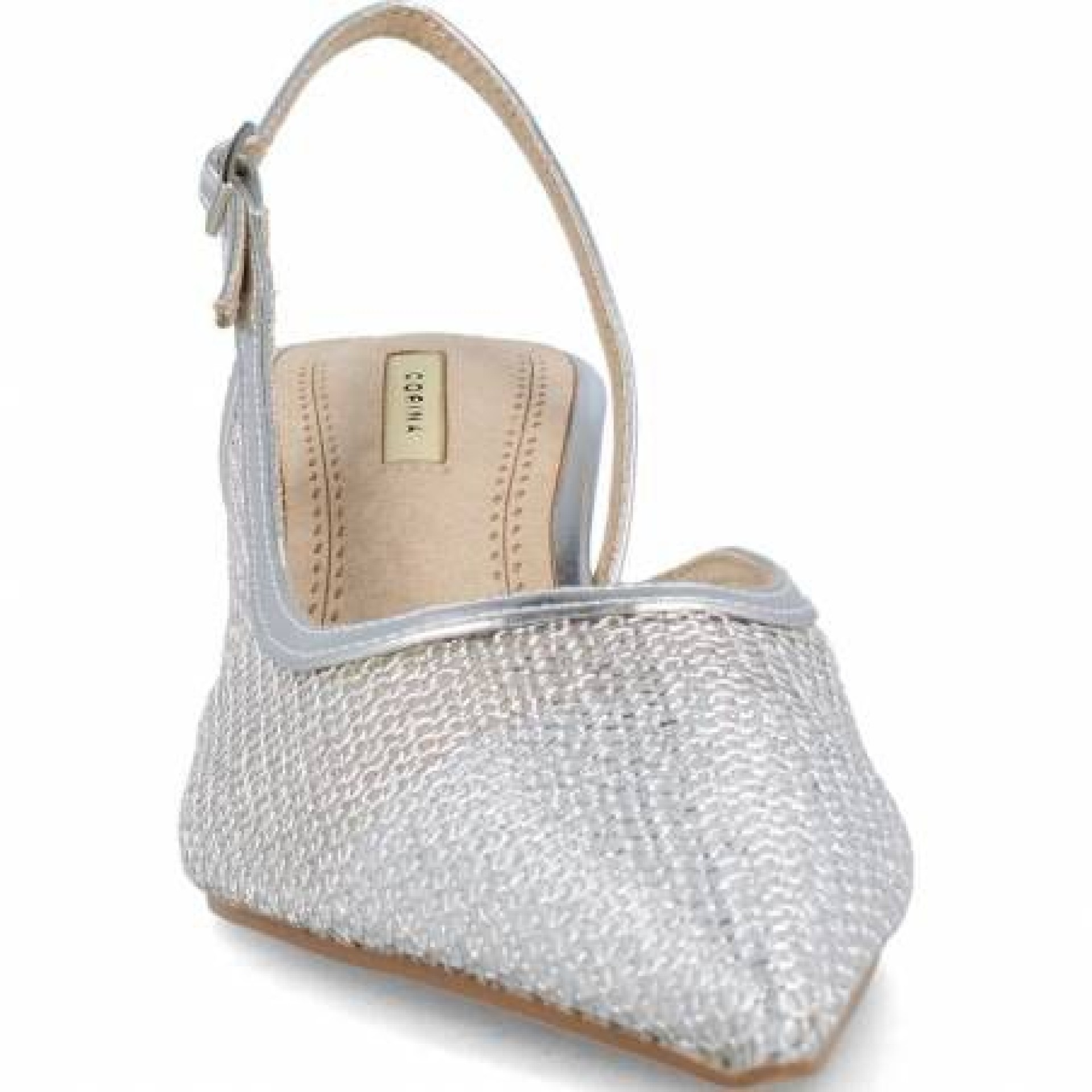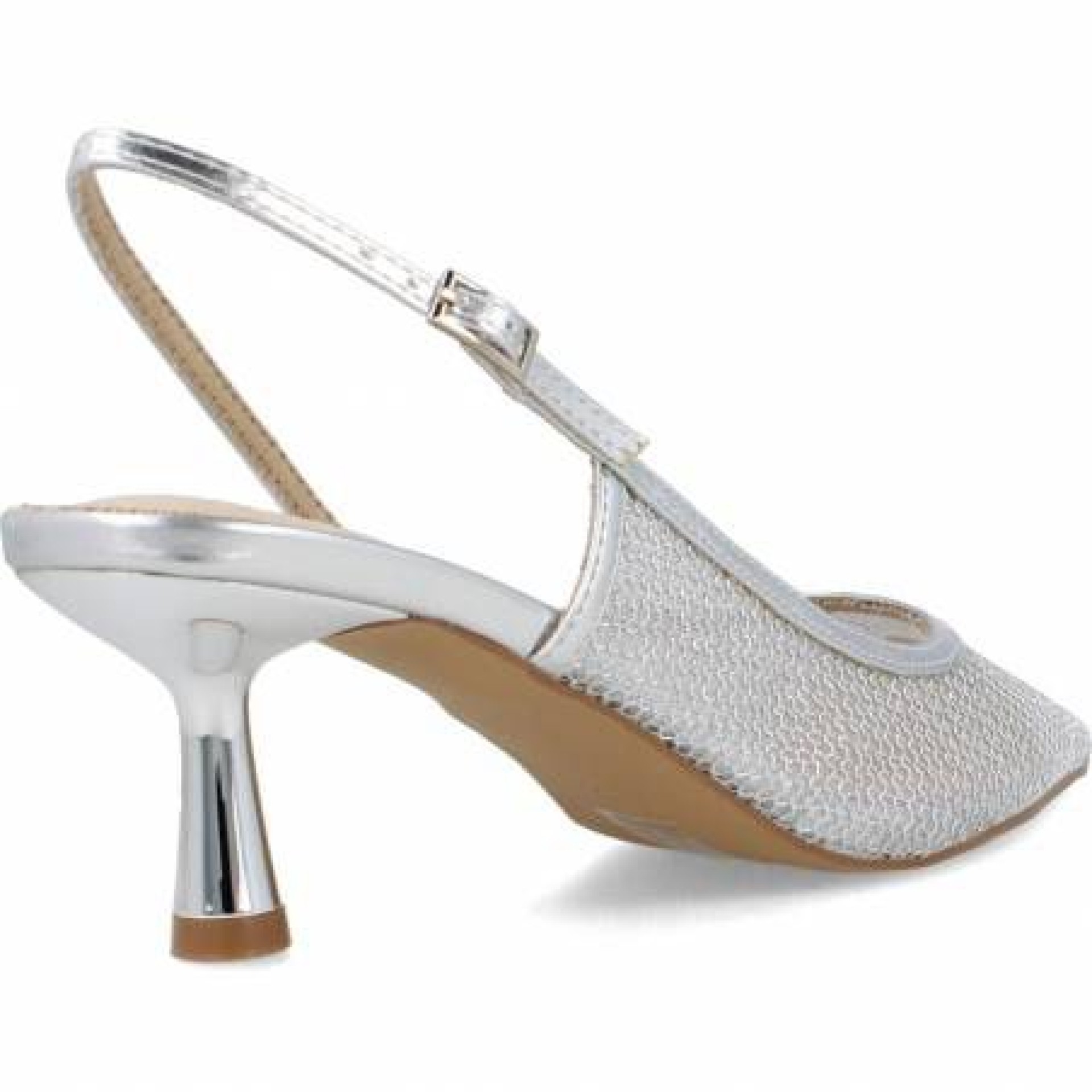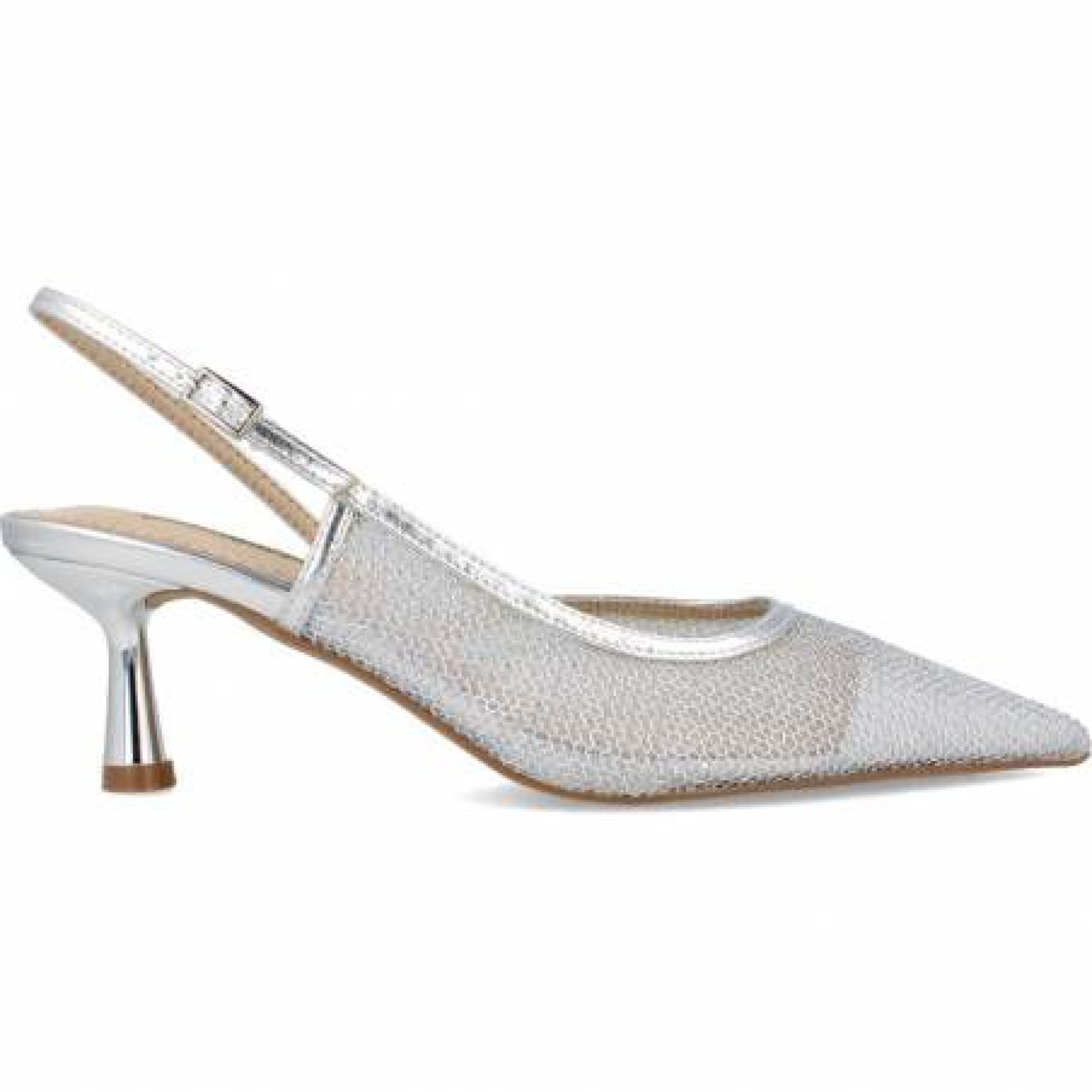 Zapato Rejilla Plateado Tacón. Acabado en punta. Tira trasera ajustable. Altura de la suela 6,5 cm. 37(2) 38(3) 39(3) 40(2) 41(1) (Tallaje amplio)