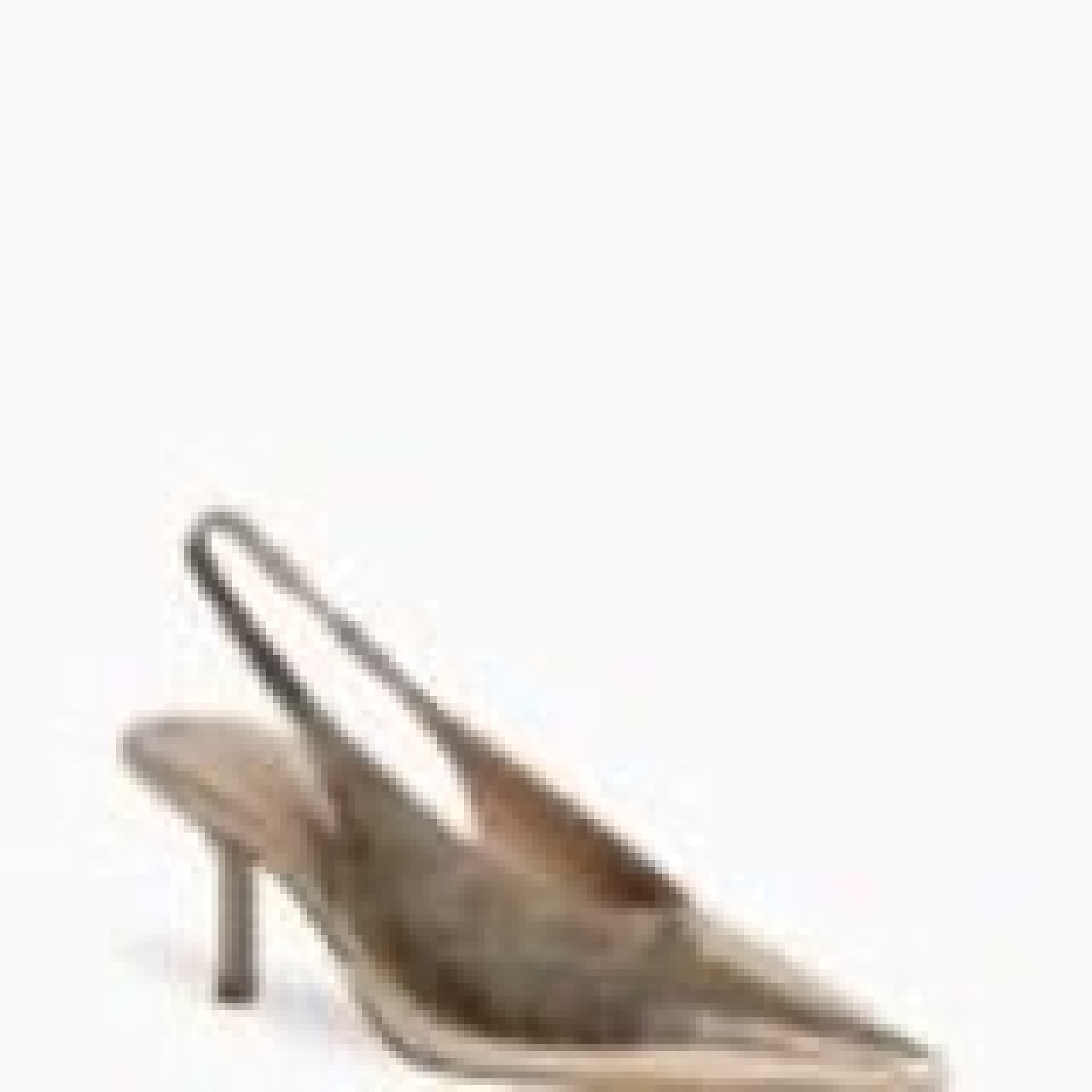 Salon destalonado de tacón medio. Acabado en punta, escote subido. Tira trasera con pieza elástica. Altura de la suela 7 cm. 37(2) 38(3) 39(3) 40(2) 41(1) (Tallaje habitual)