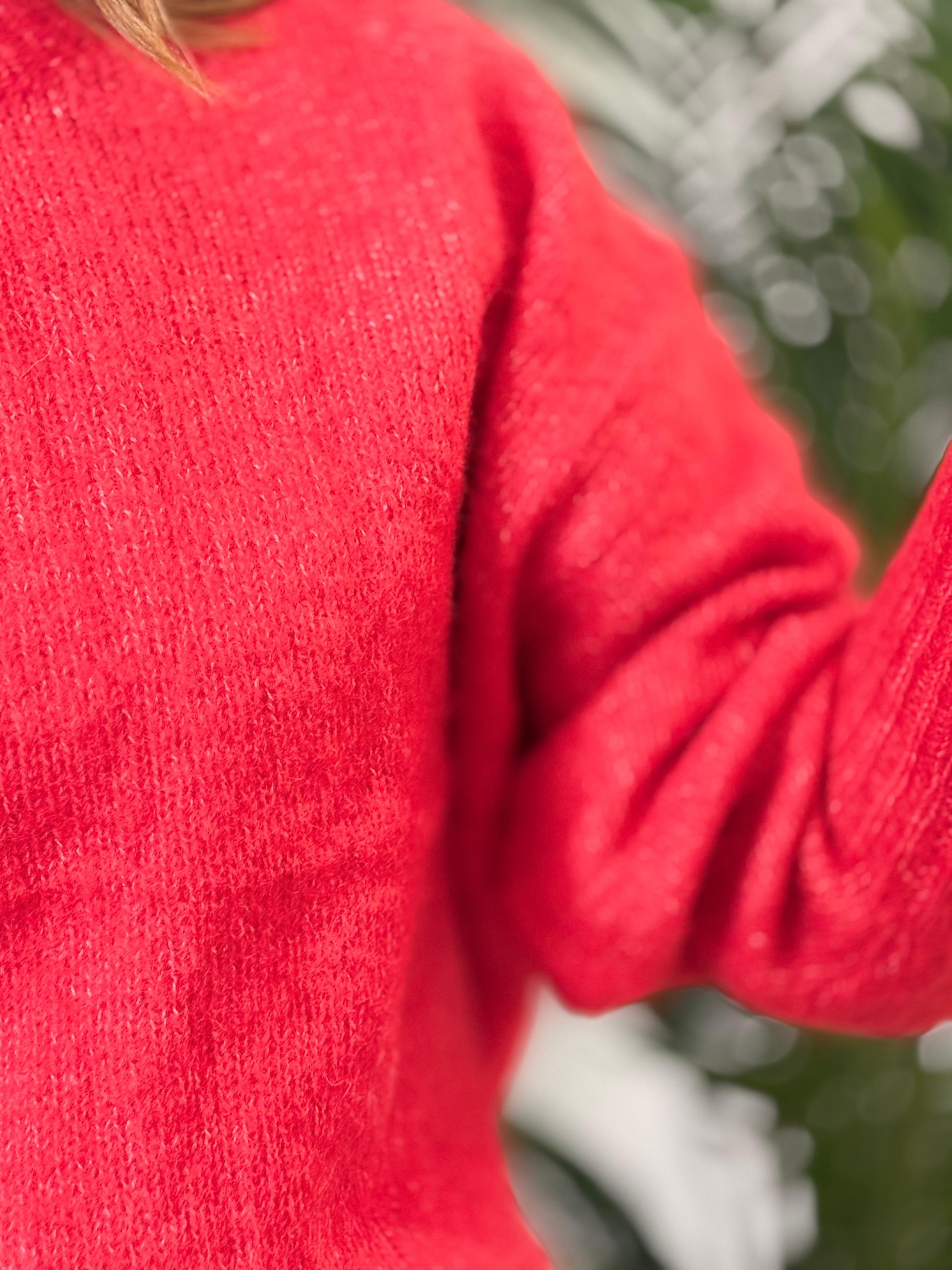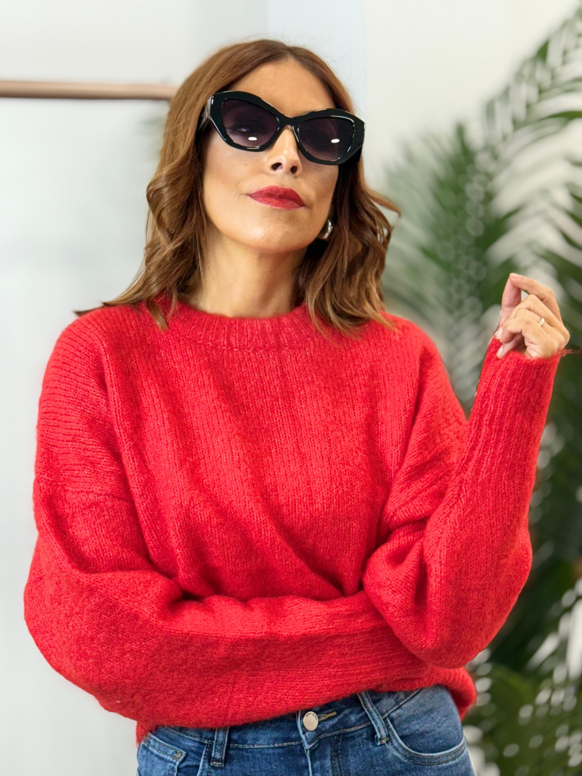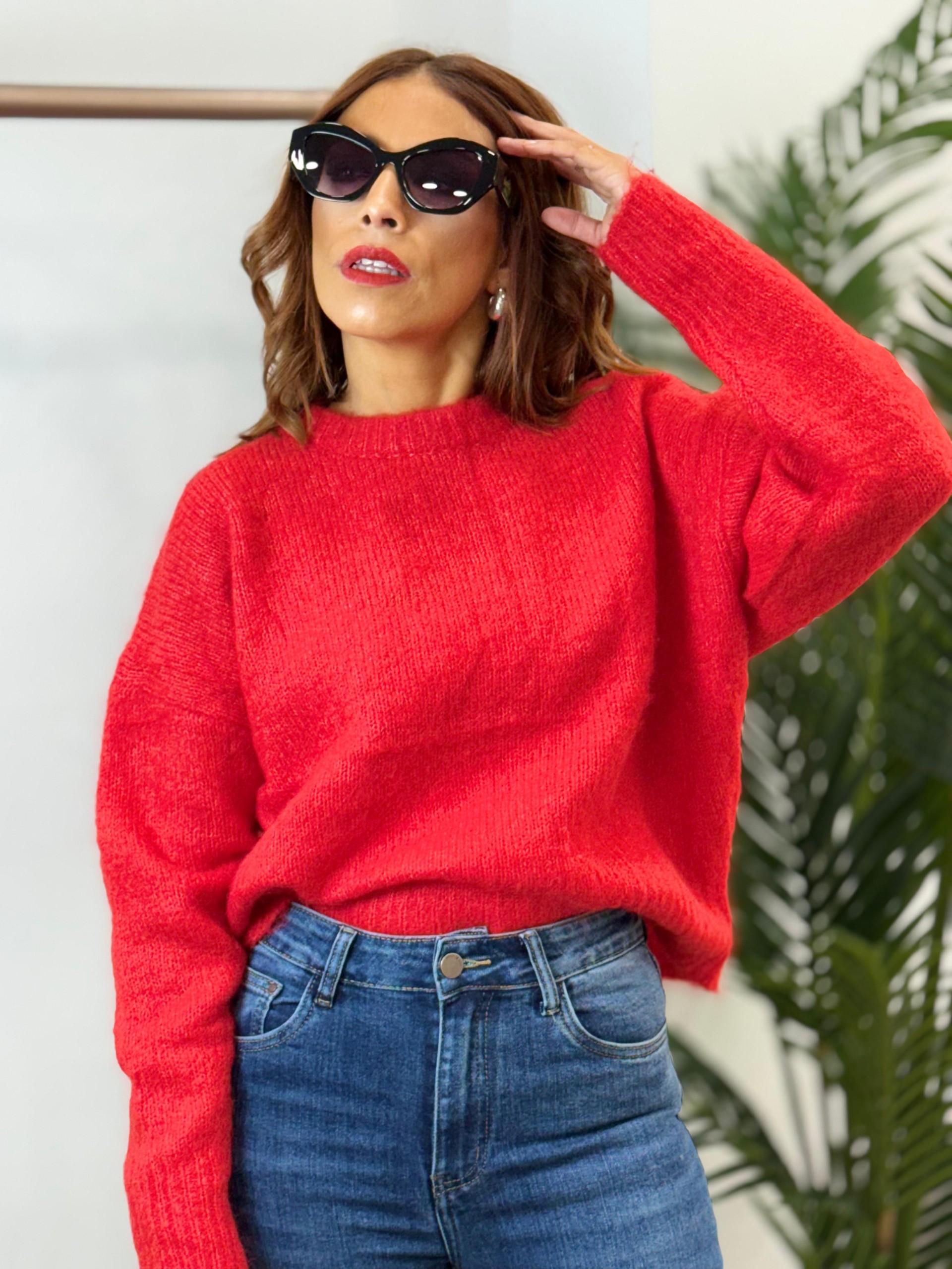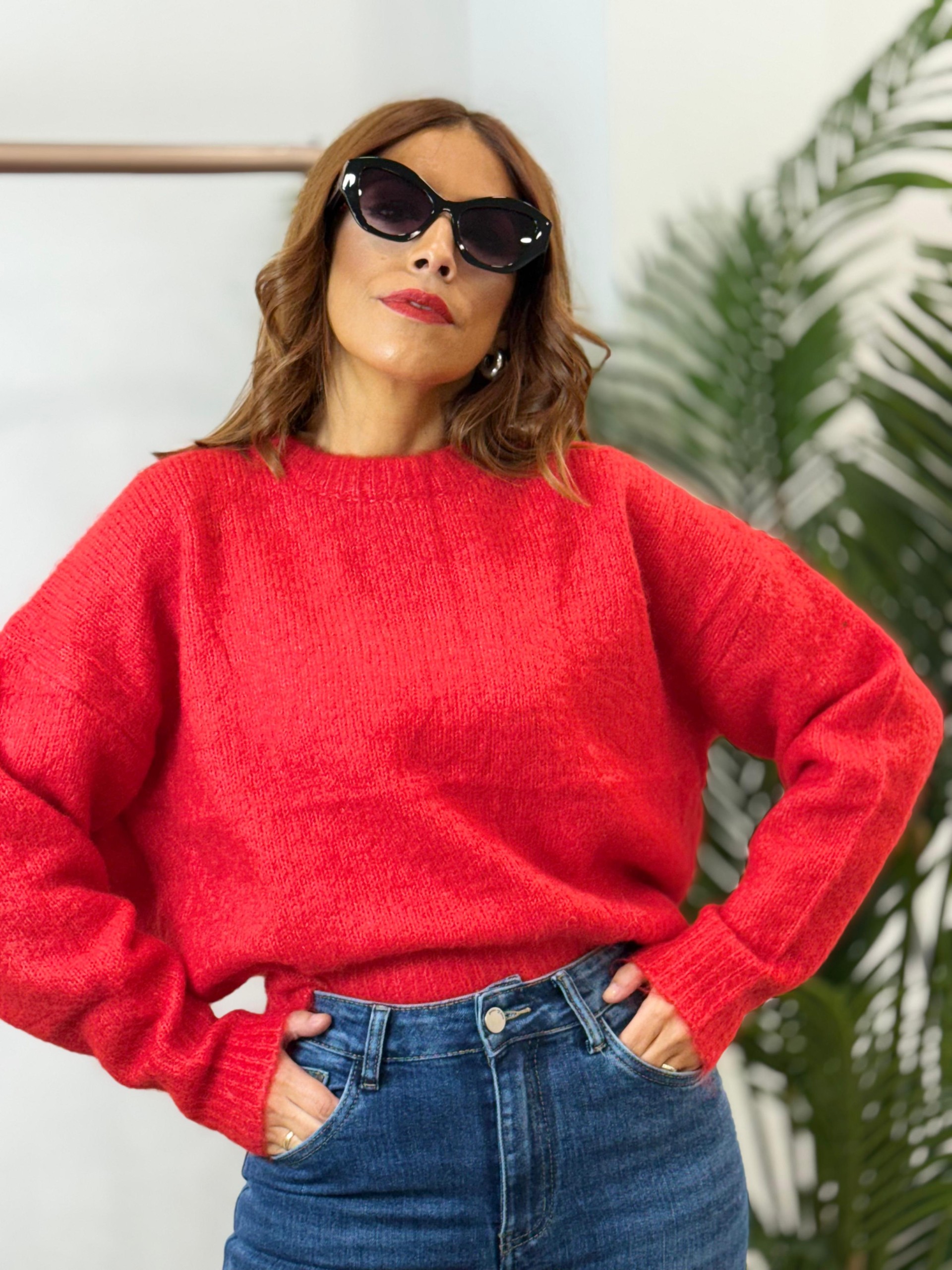 Jersey basic rojo coral. Cuello redondo y corte oversize.