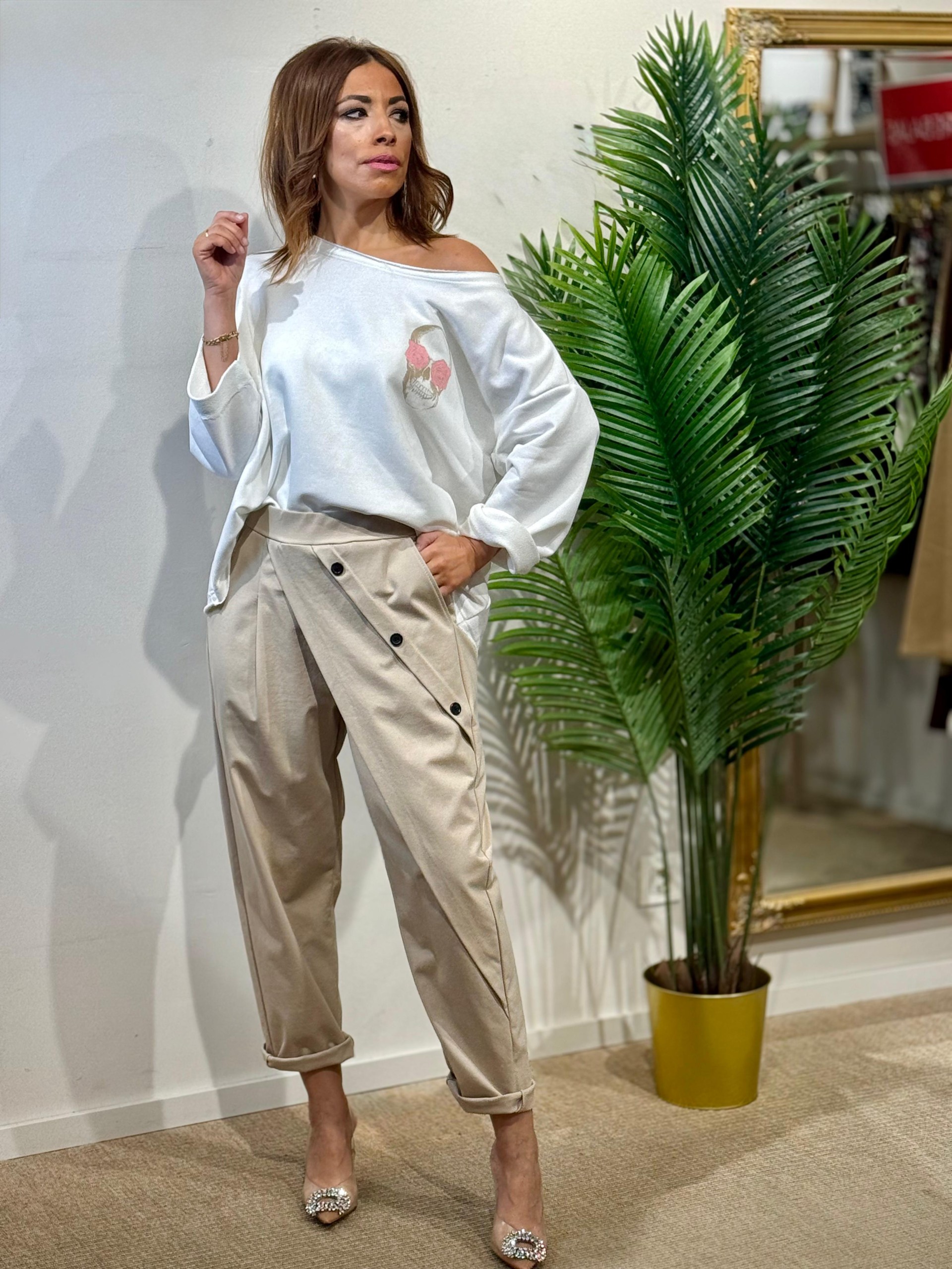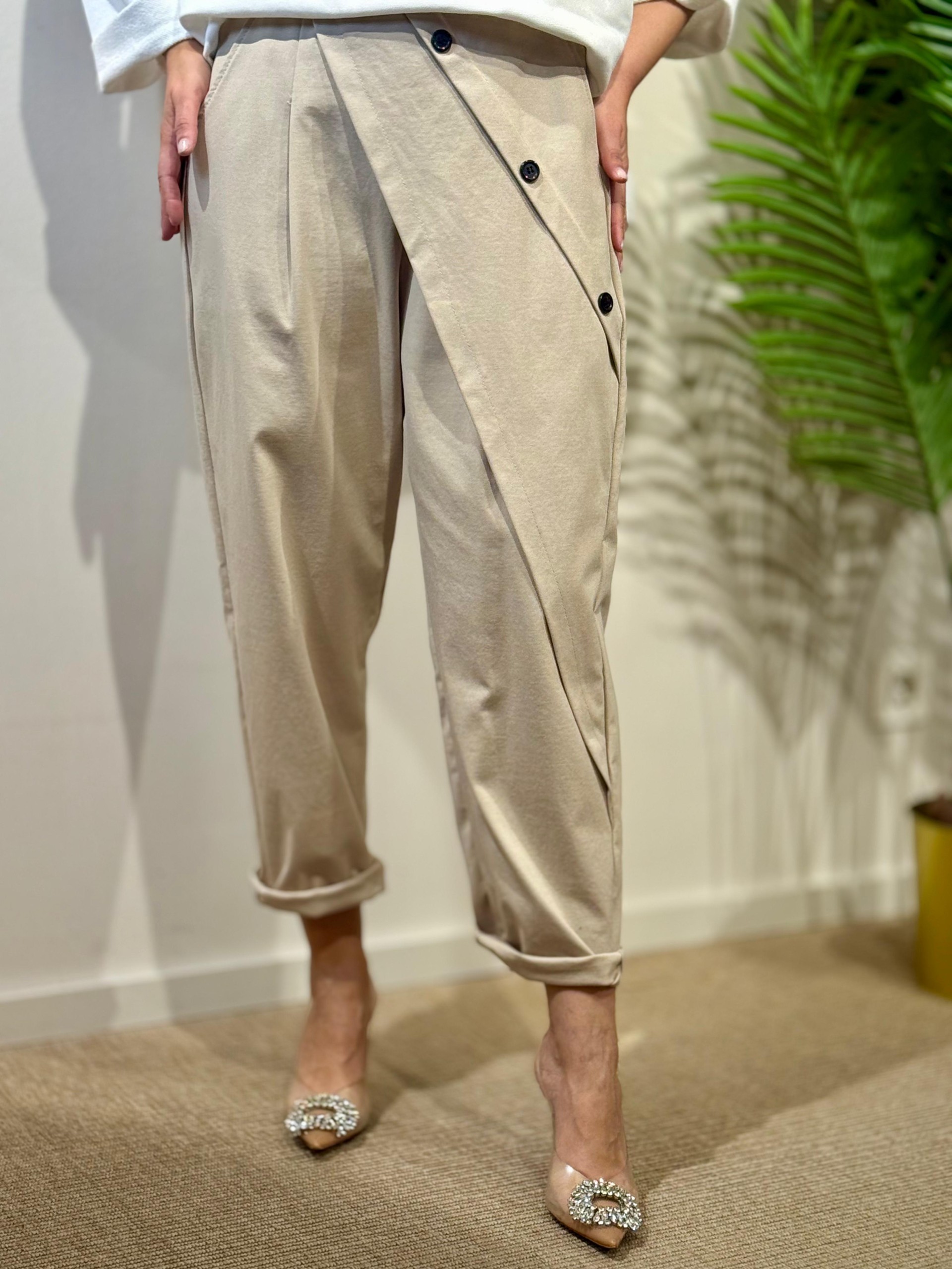 Pantalón Baggie Botones Beige.