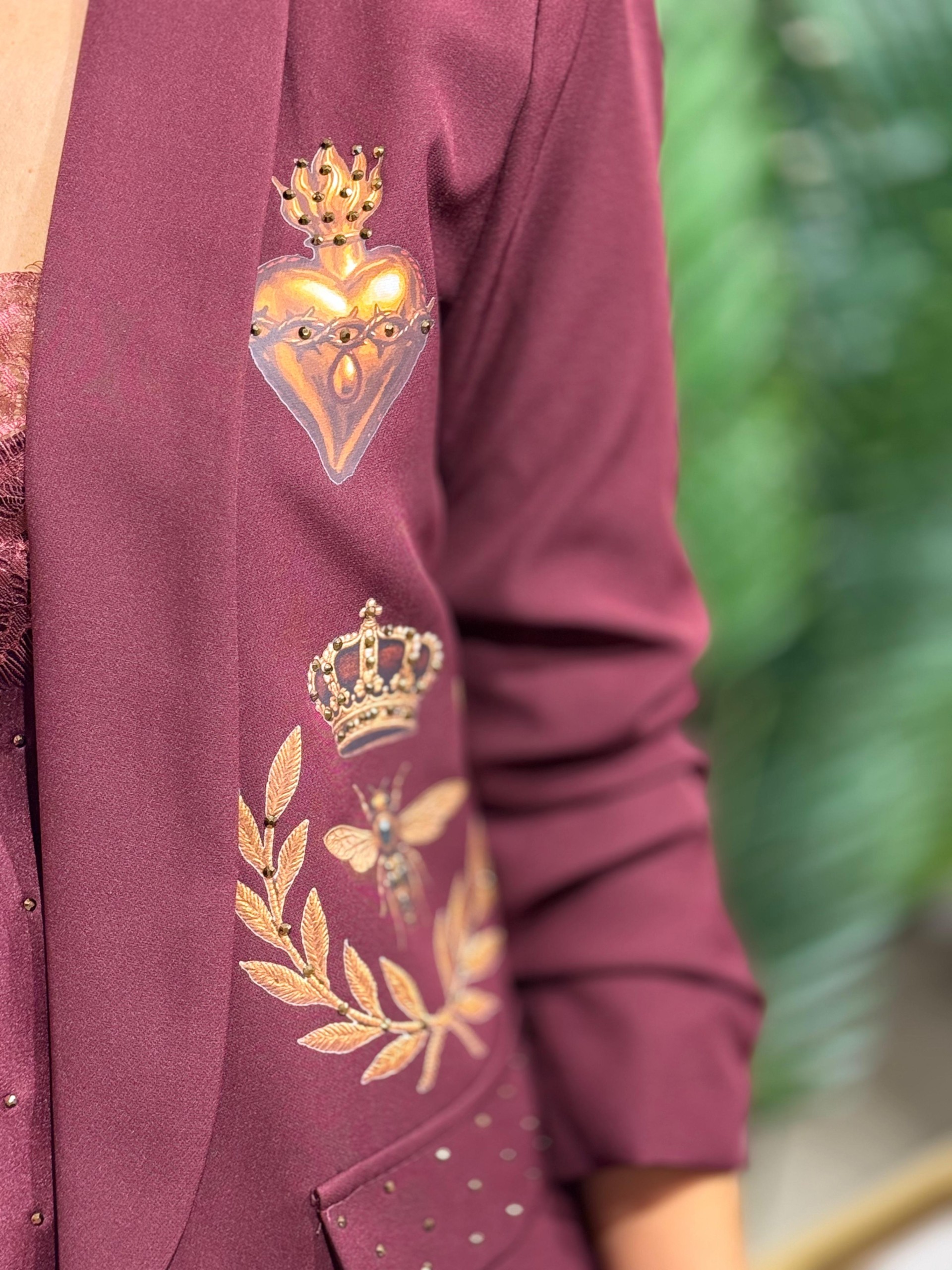 Blazer EMPODERADA TOTAL burdeos. Diseño Exclusivo By La Presumida. Mensaje en glitter dorado en espalda. Corte entallado y forro interior. Detalles con strass.