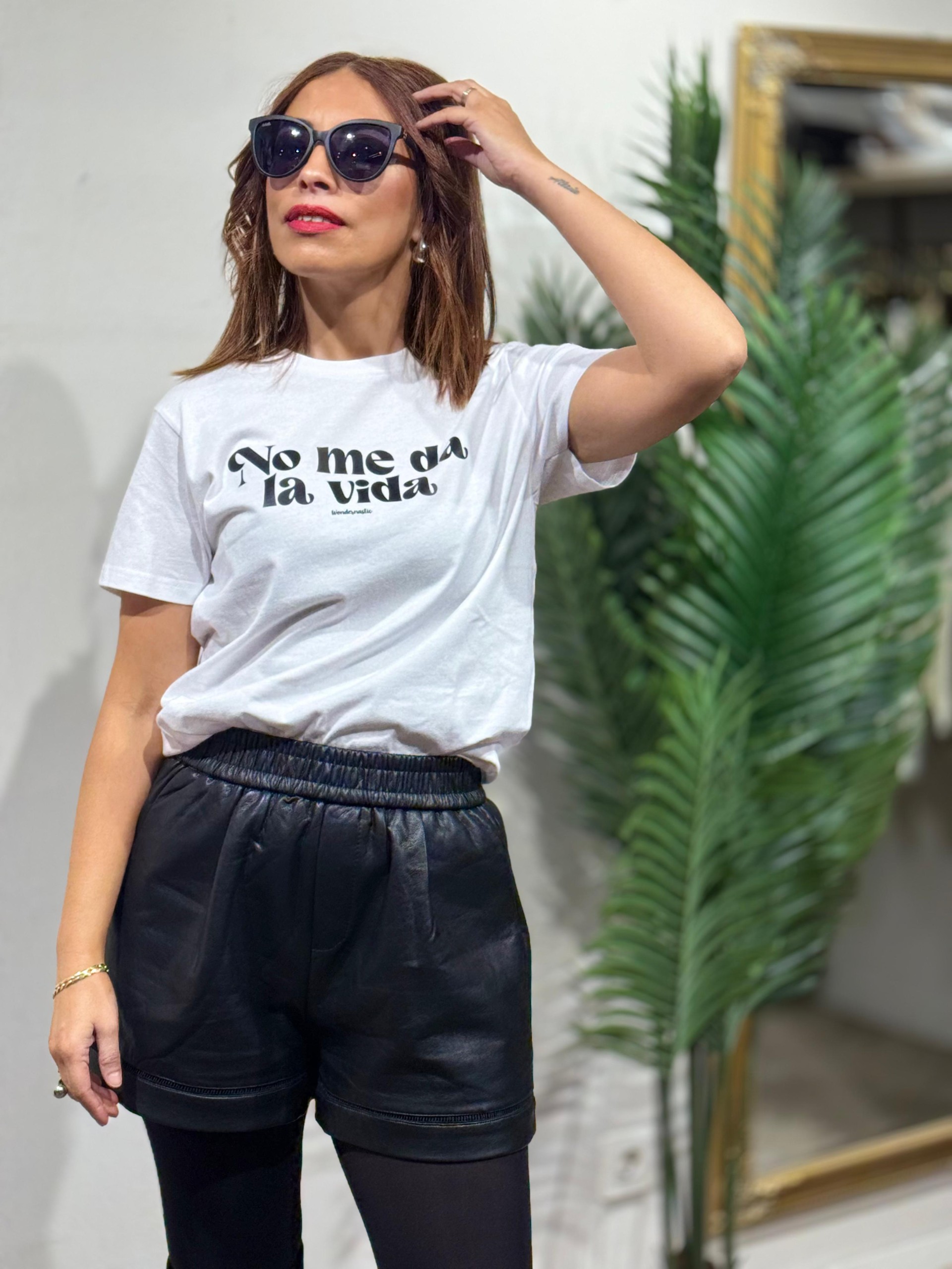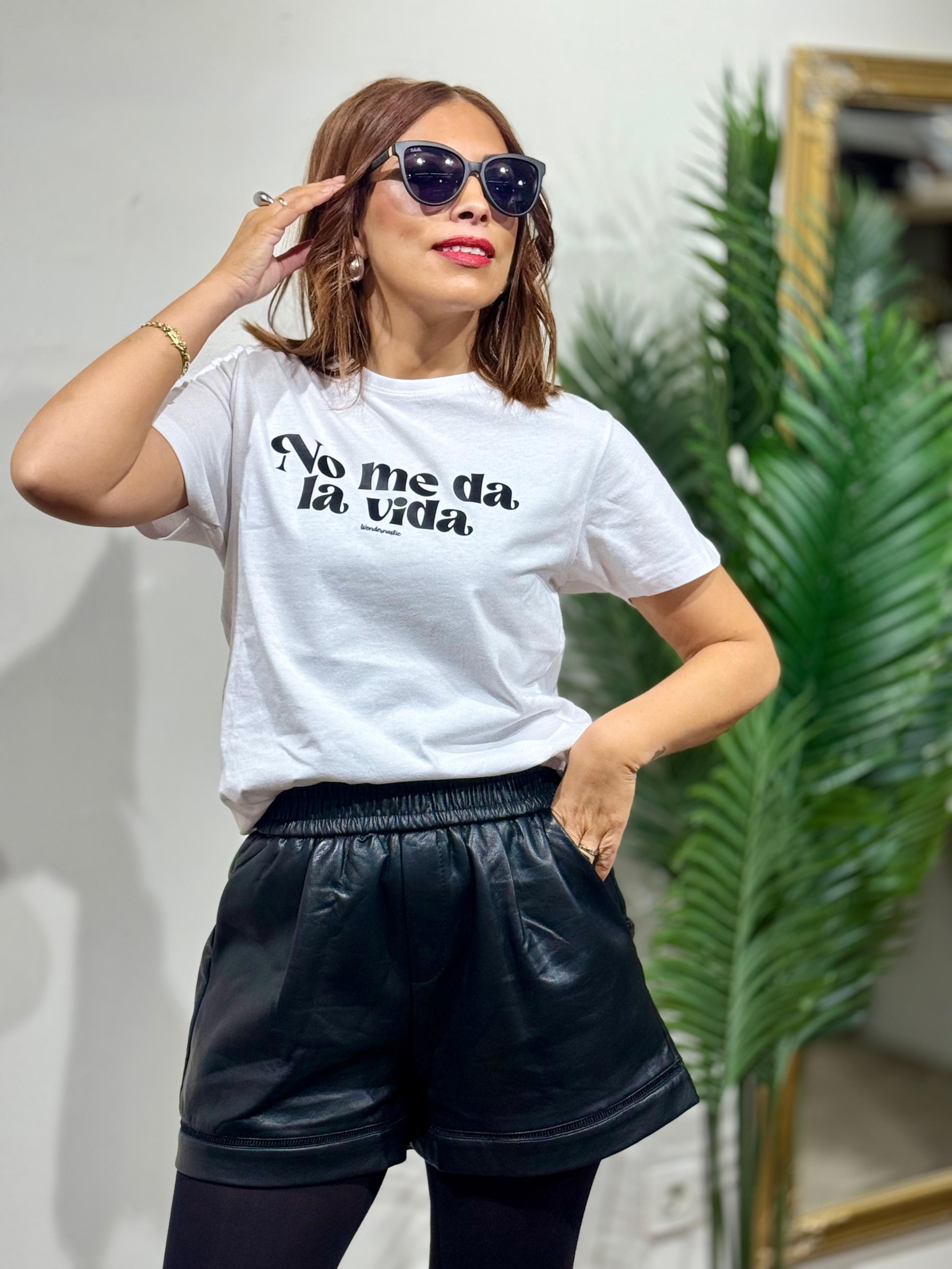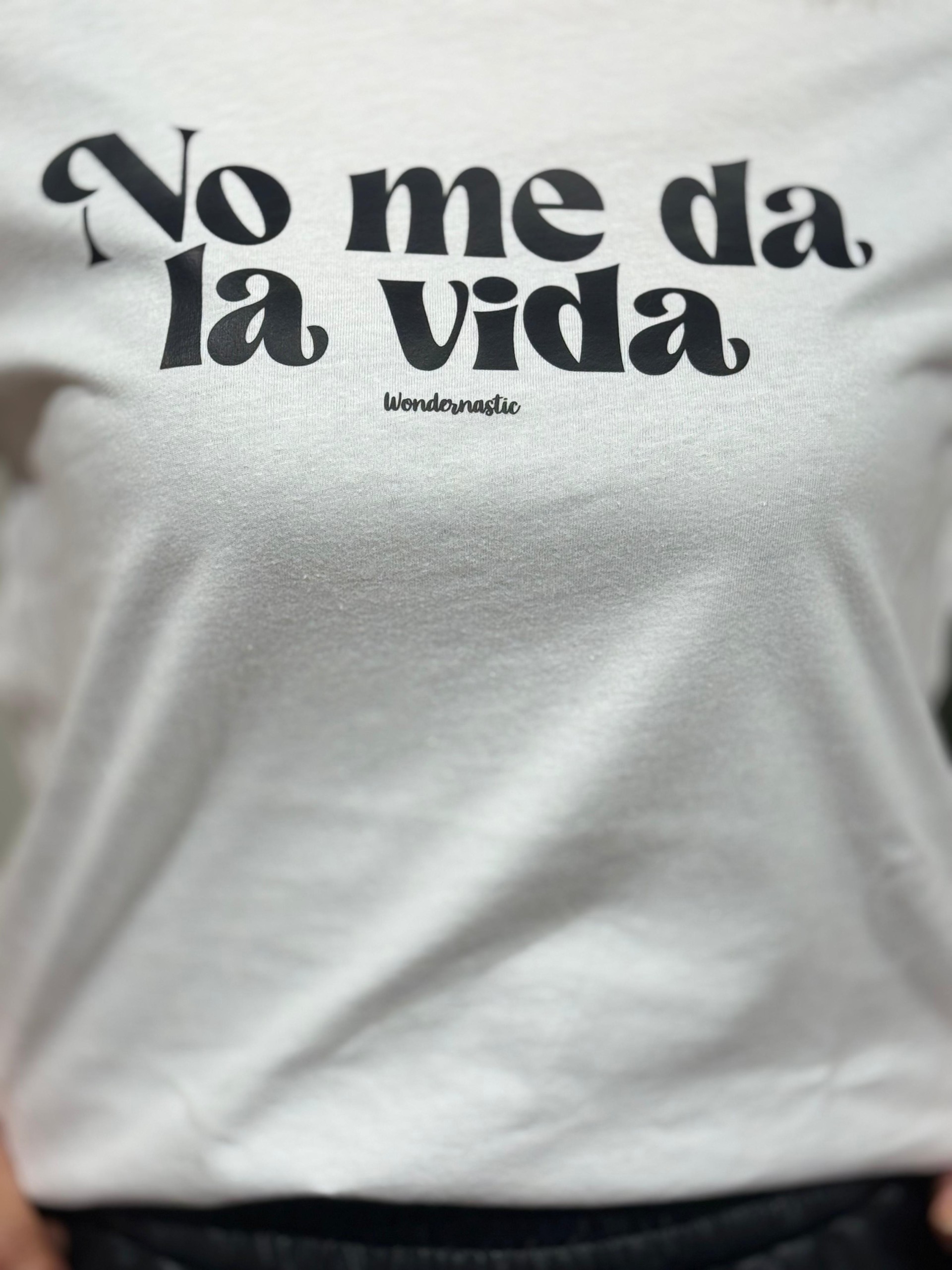 Camiseta “No me da la vida” Blanca. Corte recto unisex. Manga corta y escote redondo.