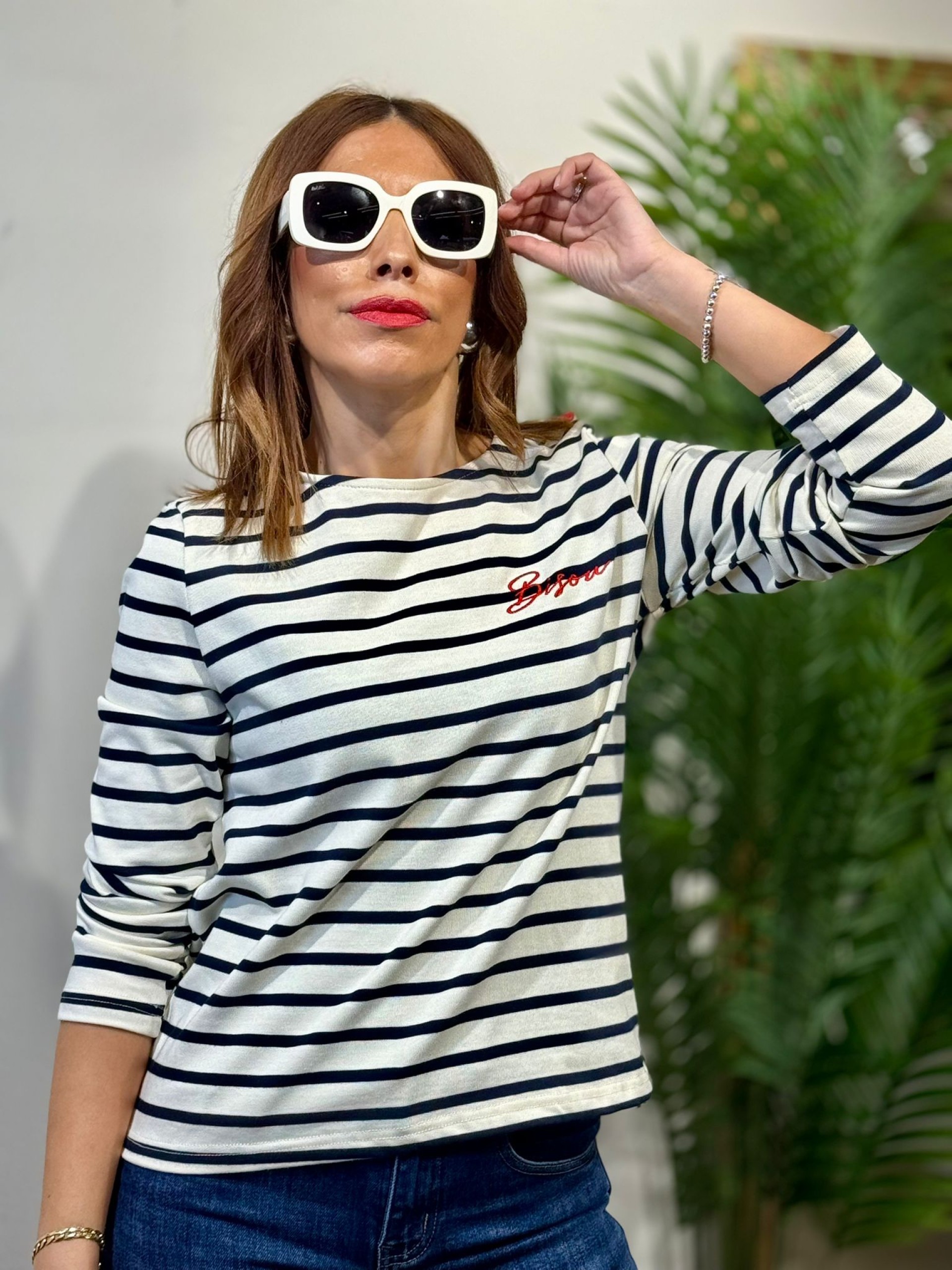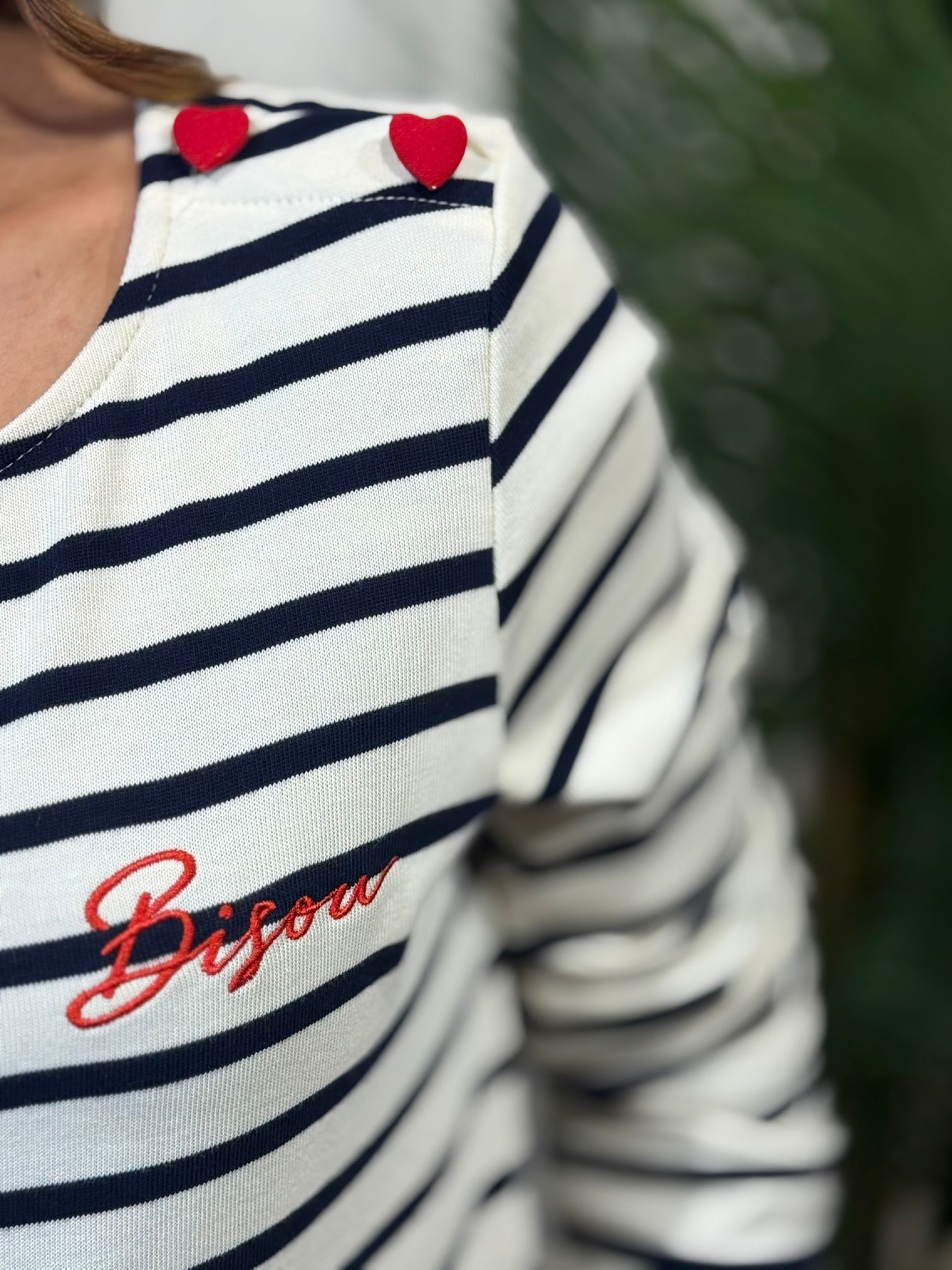 Camiseta Rayas Botón Corazón. Manga larga y tejido de algodón de alta calidad. Botones forrados con forja de corazón.