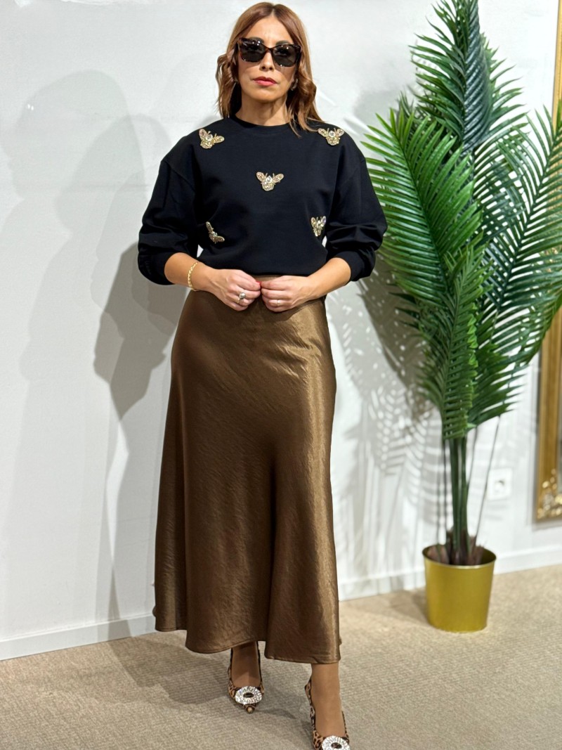 Falda satén marrón dorada