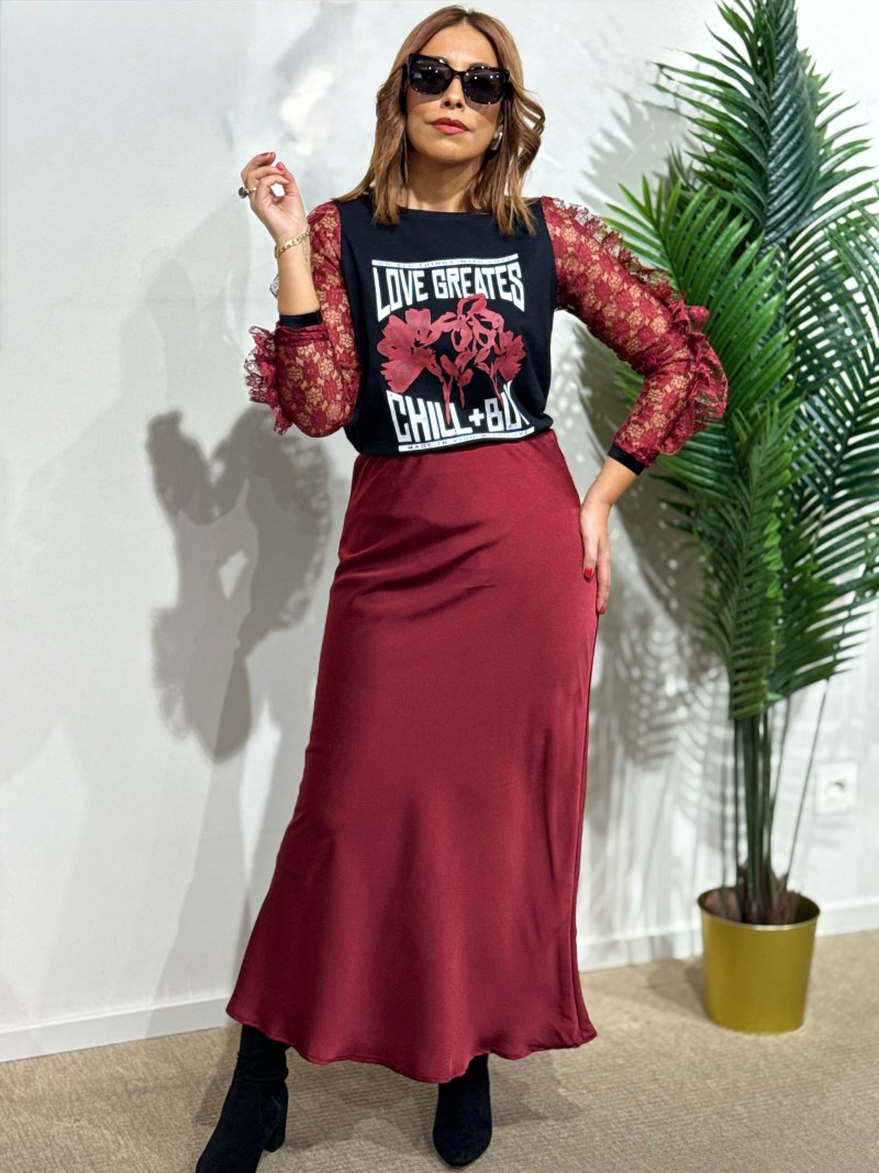 Falda satén granate