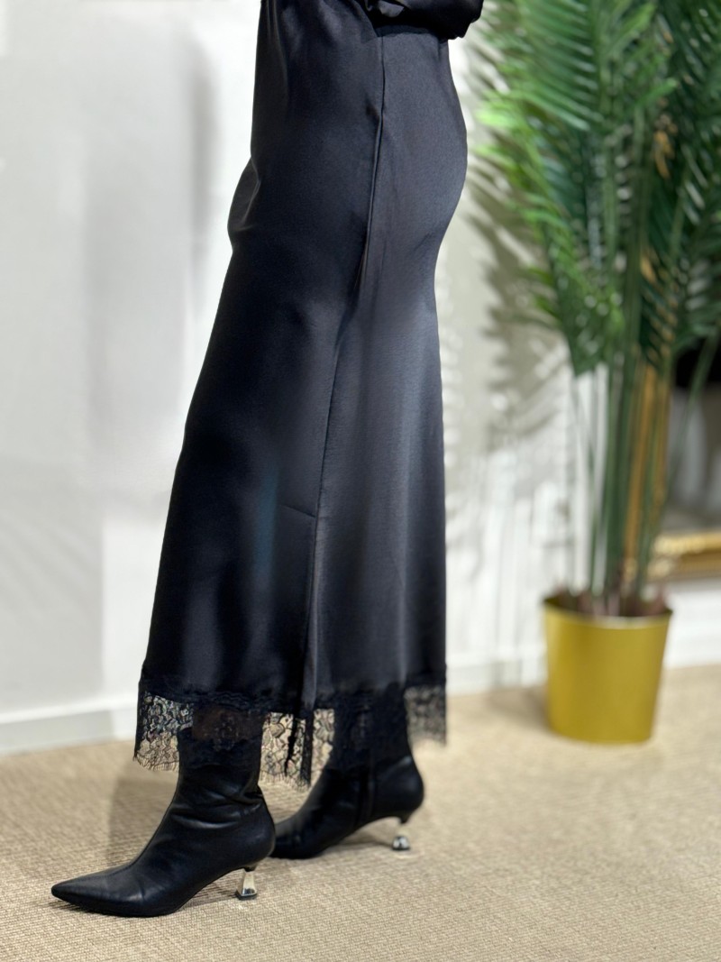 Falda satinada encaje negra