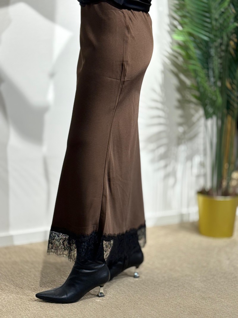 Falda satinada encaje choco
