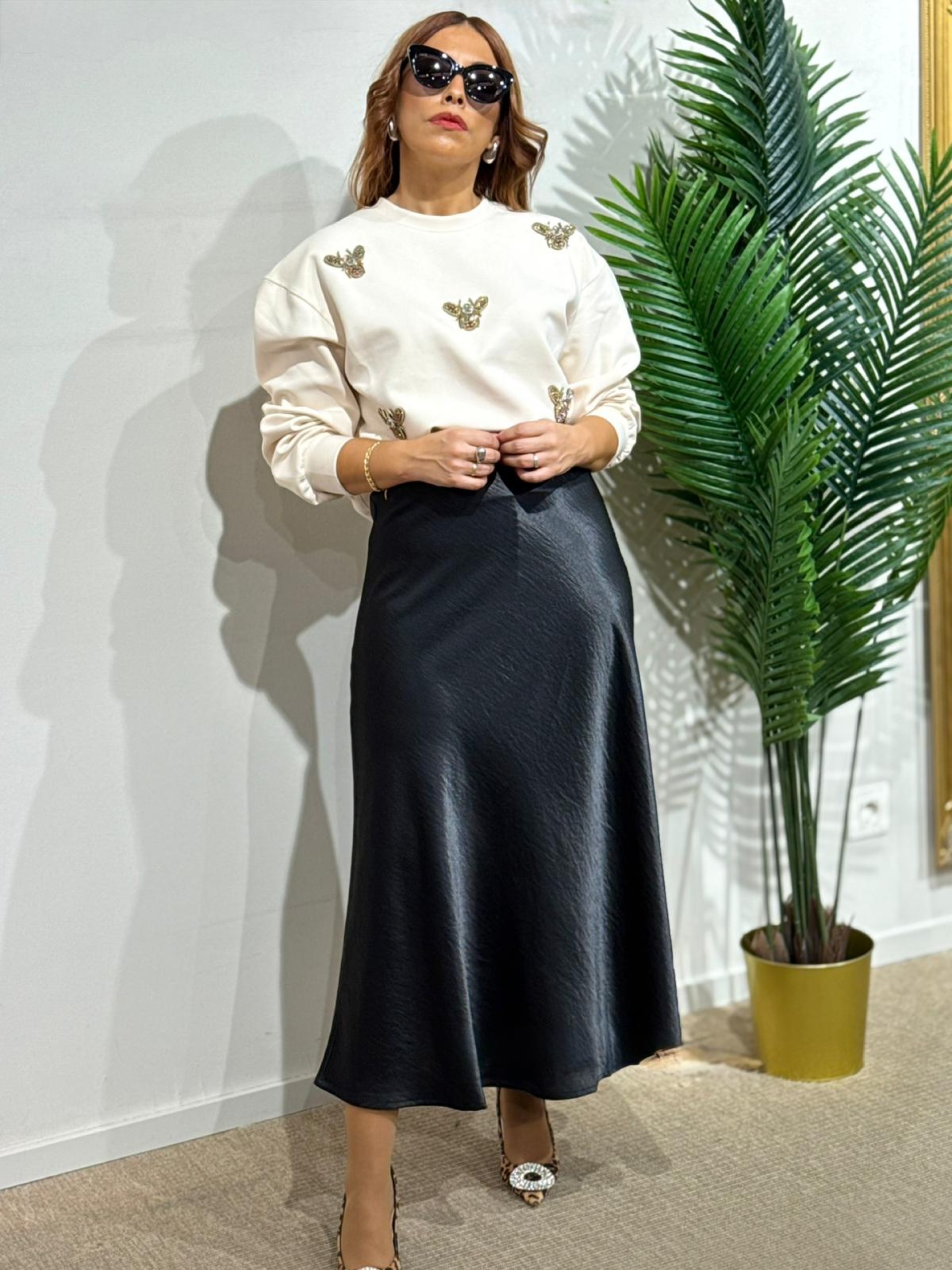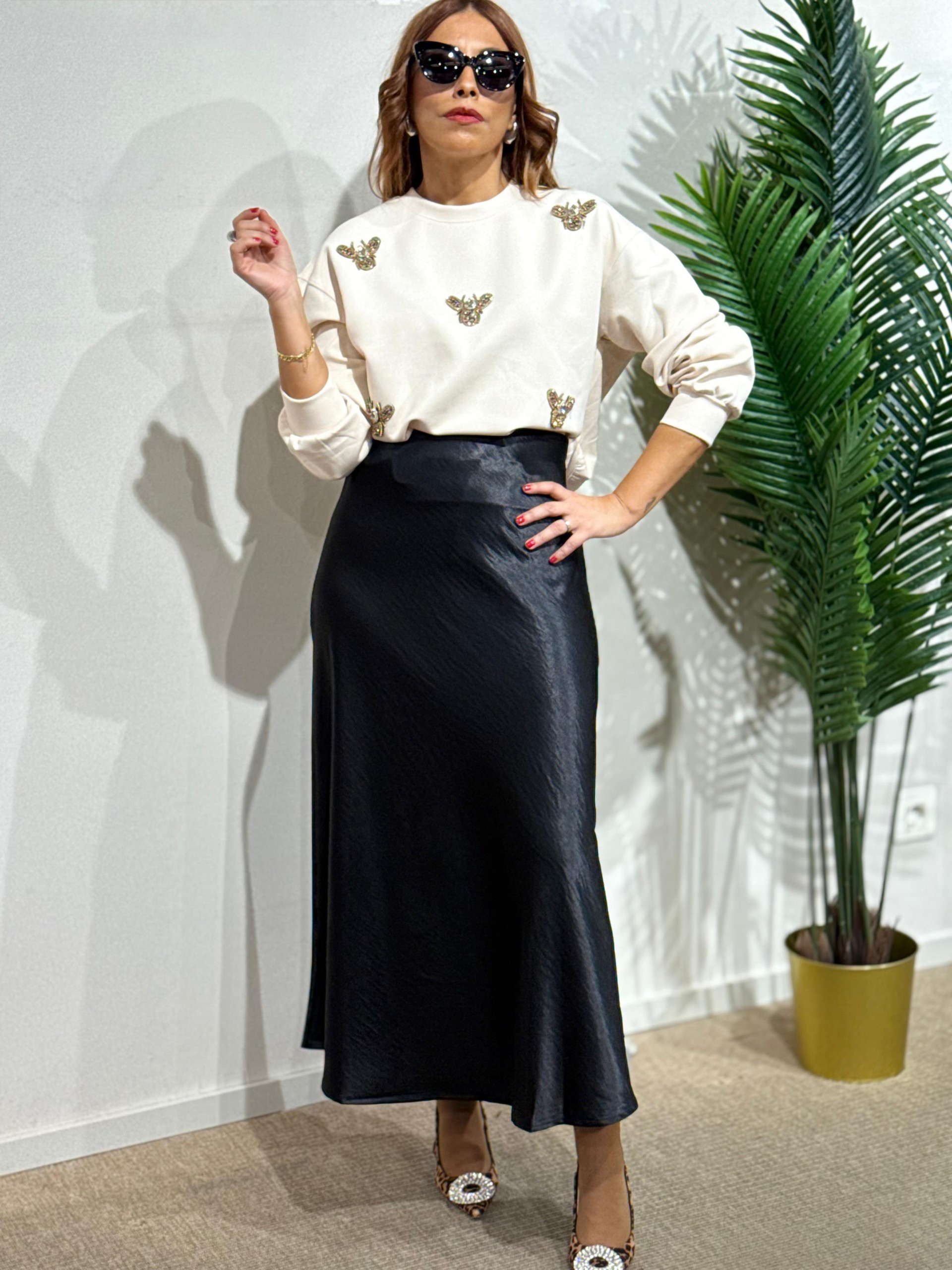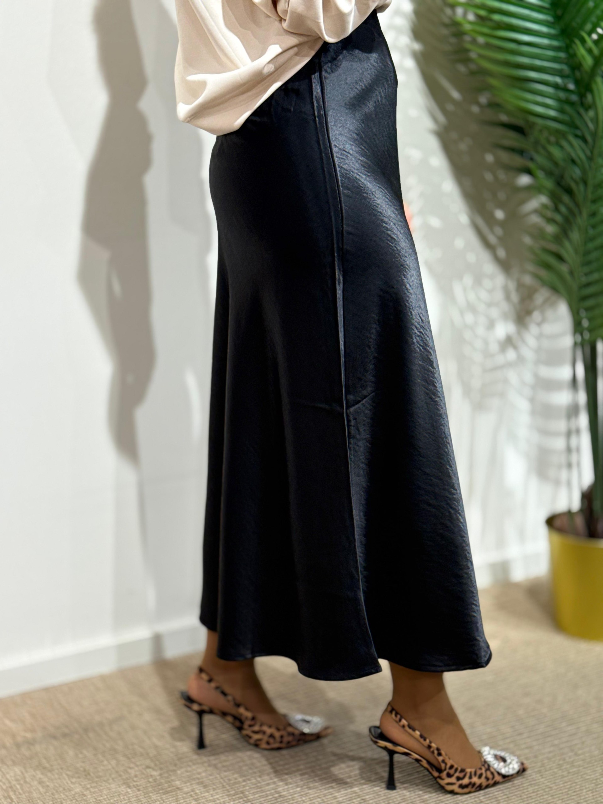 Falda satén negra. Cintura elástica engomada. (Tejido de alta calidad)